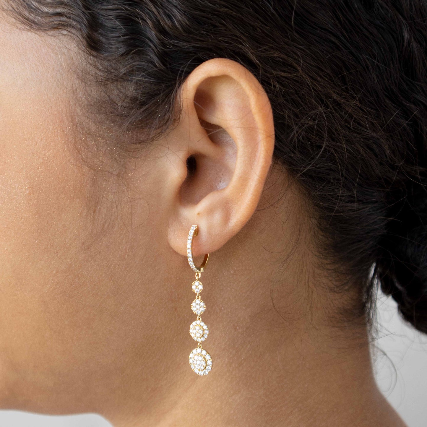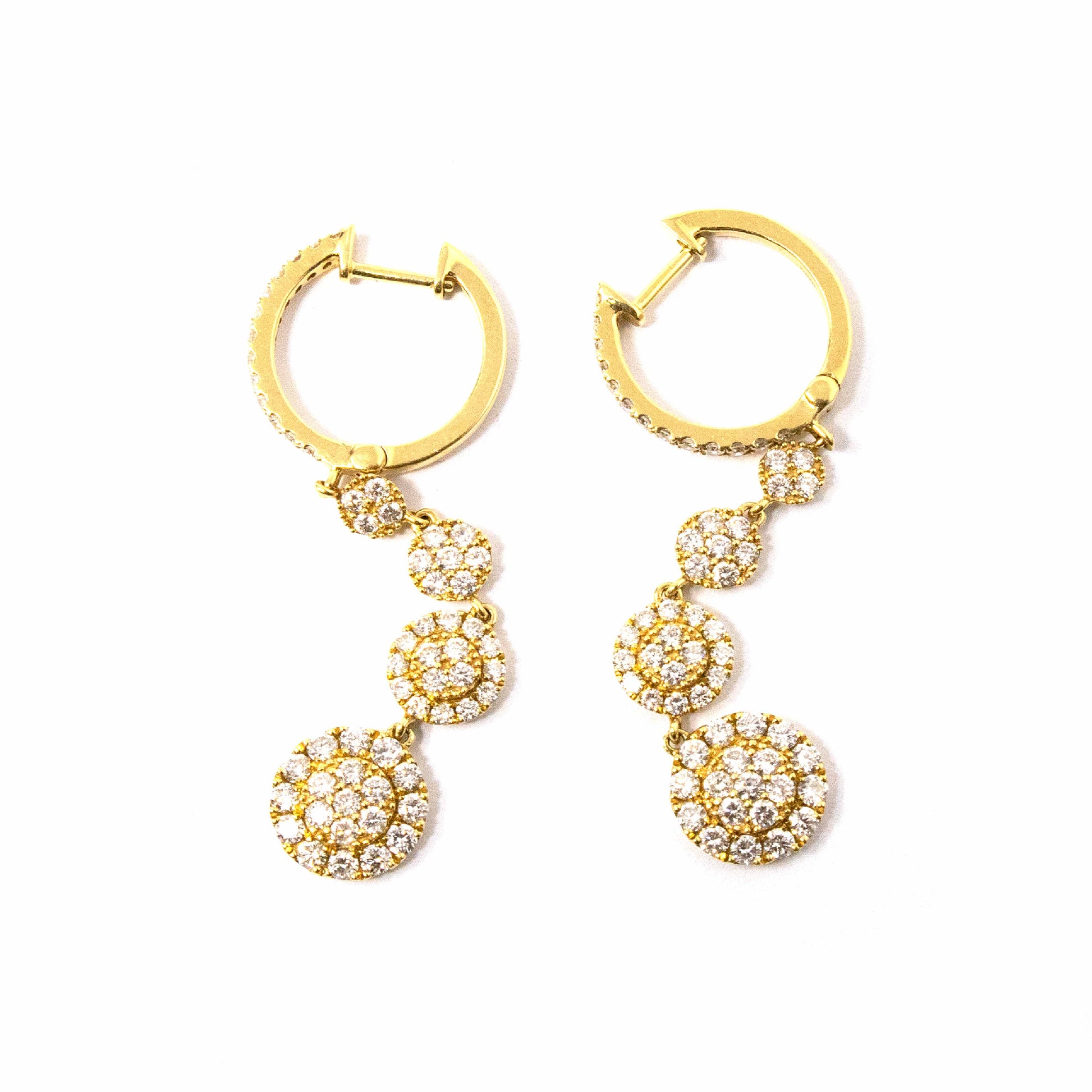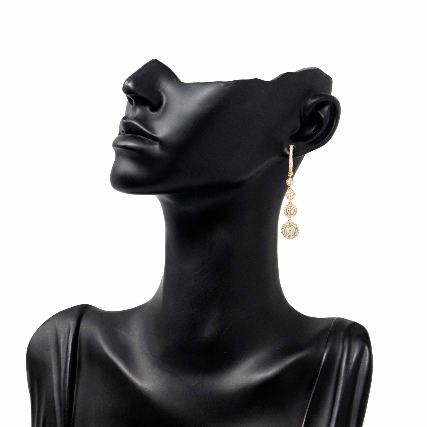Add a touch of glamour with our 18K yellow gold 4 ball dangling diamond earrings, the perfect statement piece for any occasion.