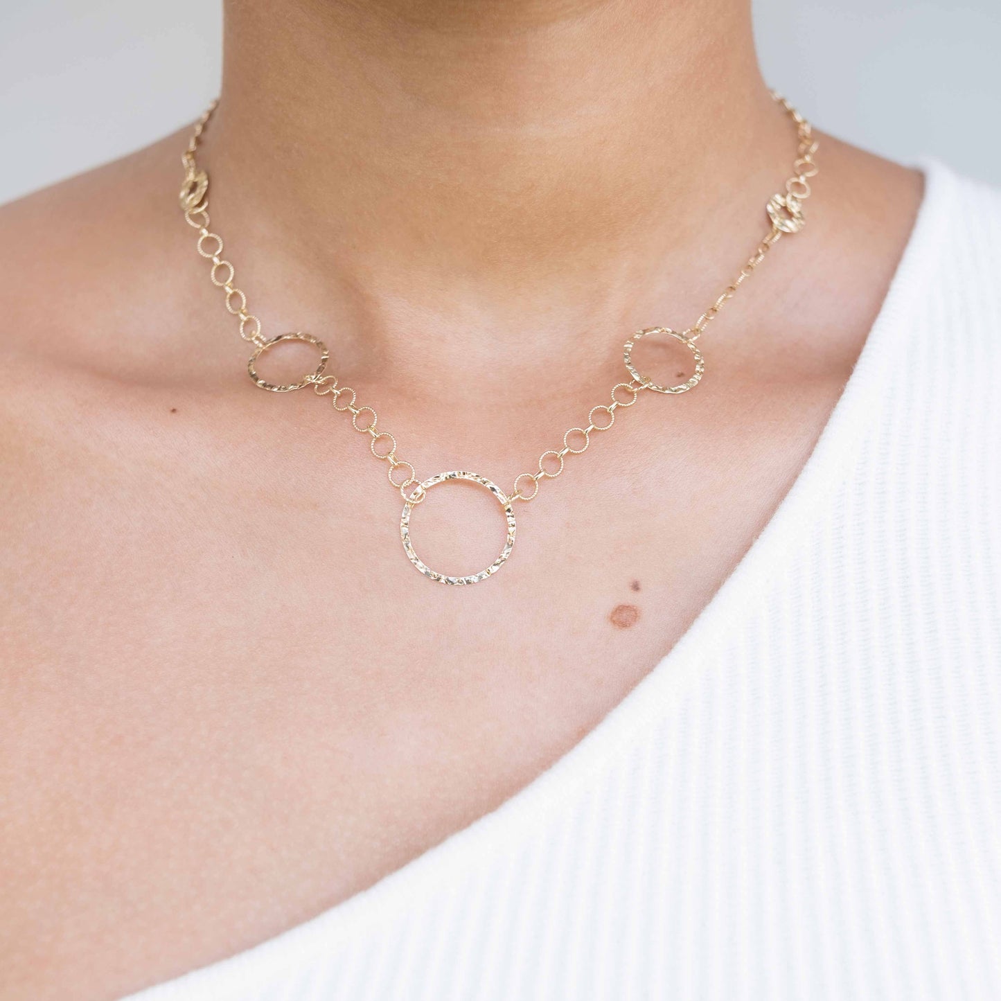 Explore elegance with our 14K circle "sautoir" necklace, a timeless symbol of sophistication and style.