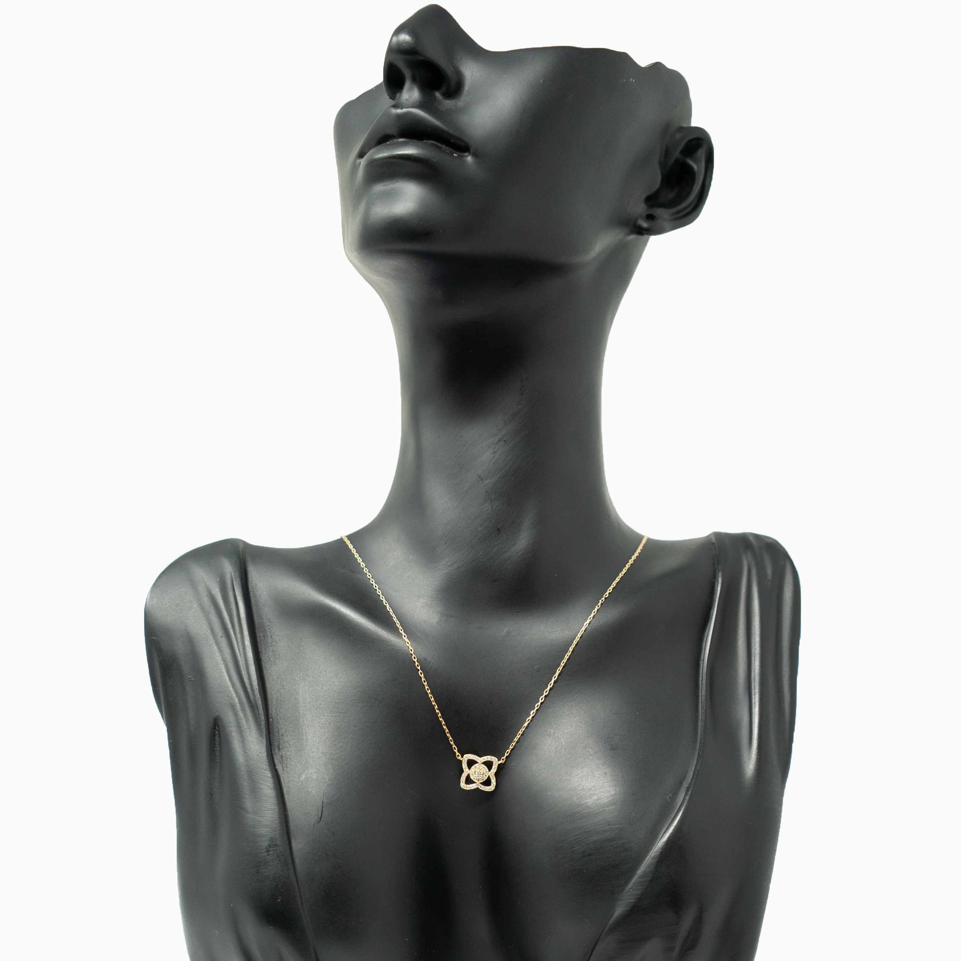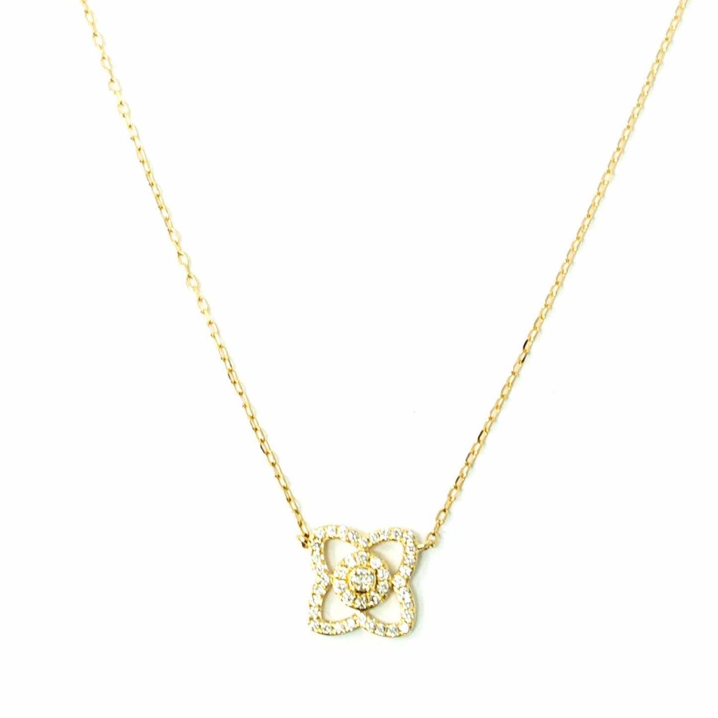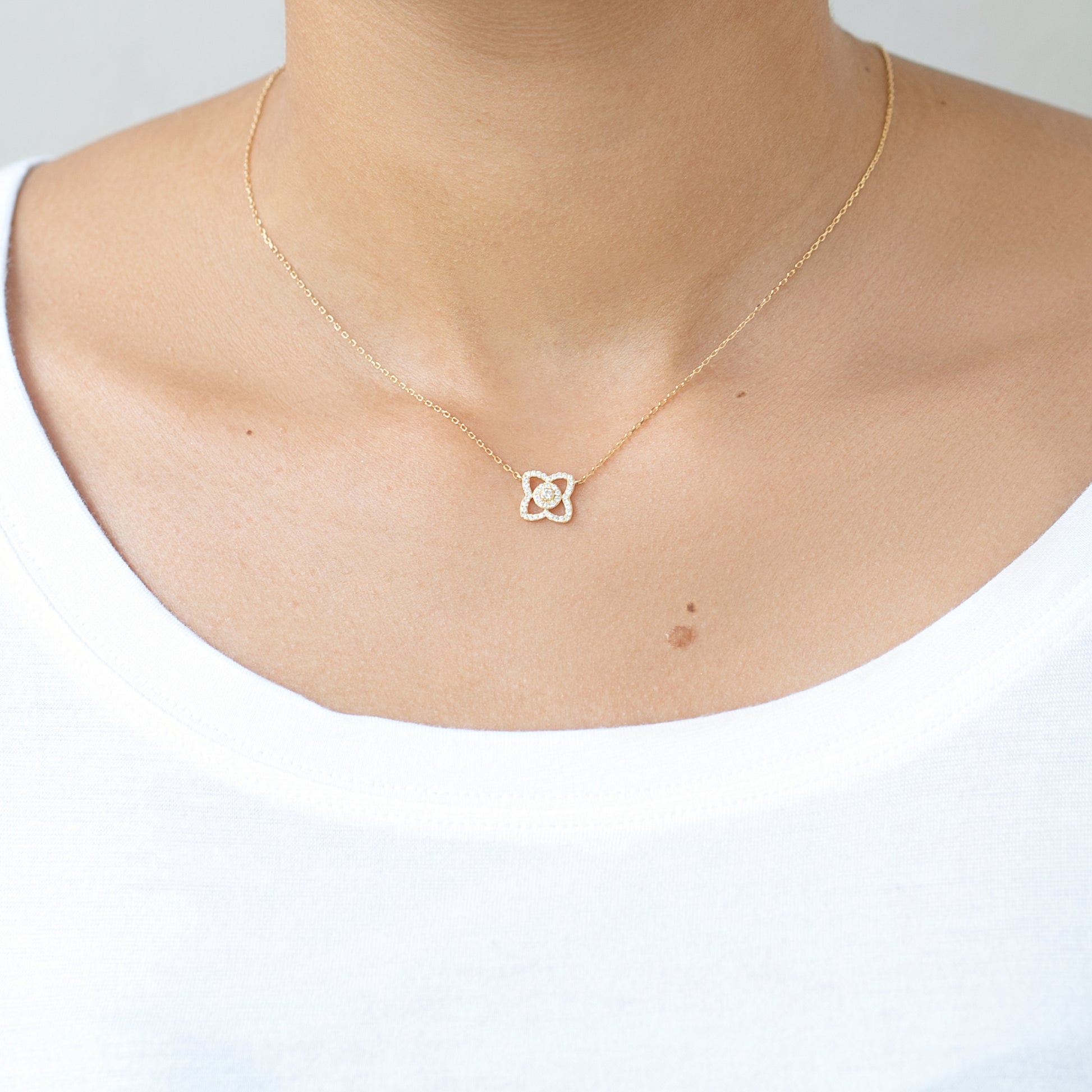 18K Yellow Gold Diamond Flower Pendant Necklace