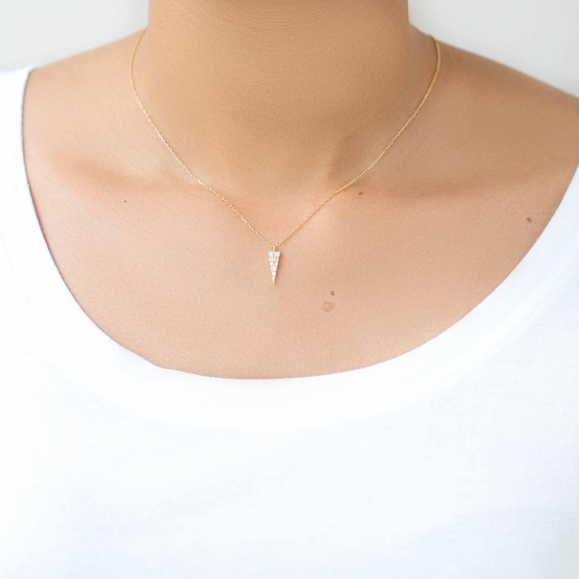 18K Yellow Gold Triangular Diamond Pendant Necklace