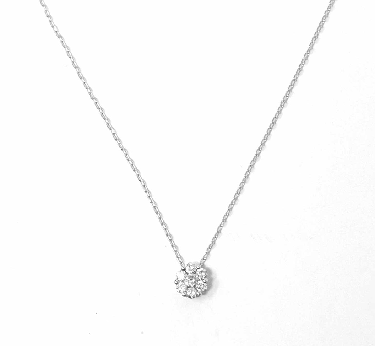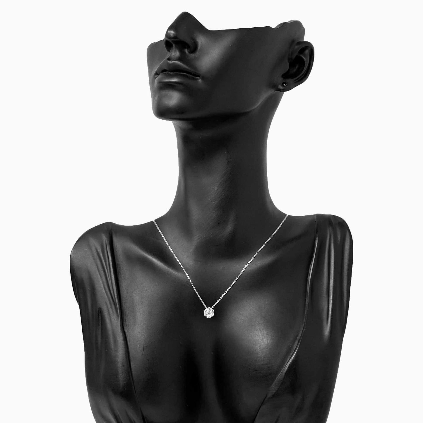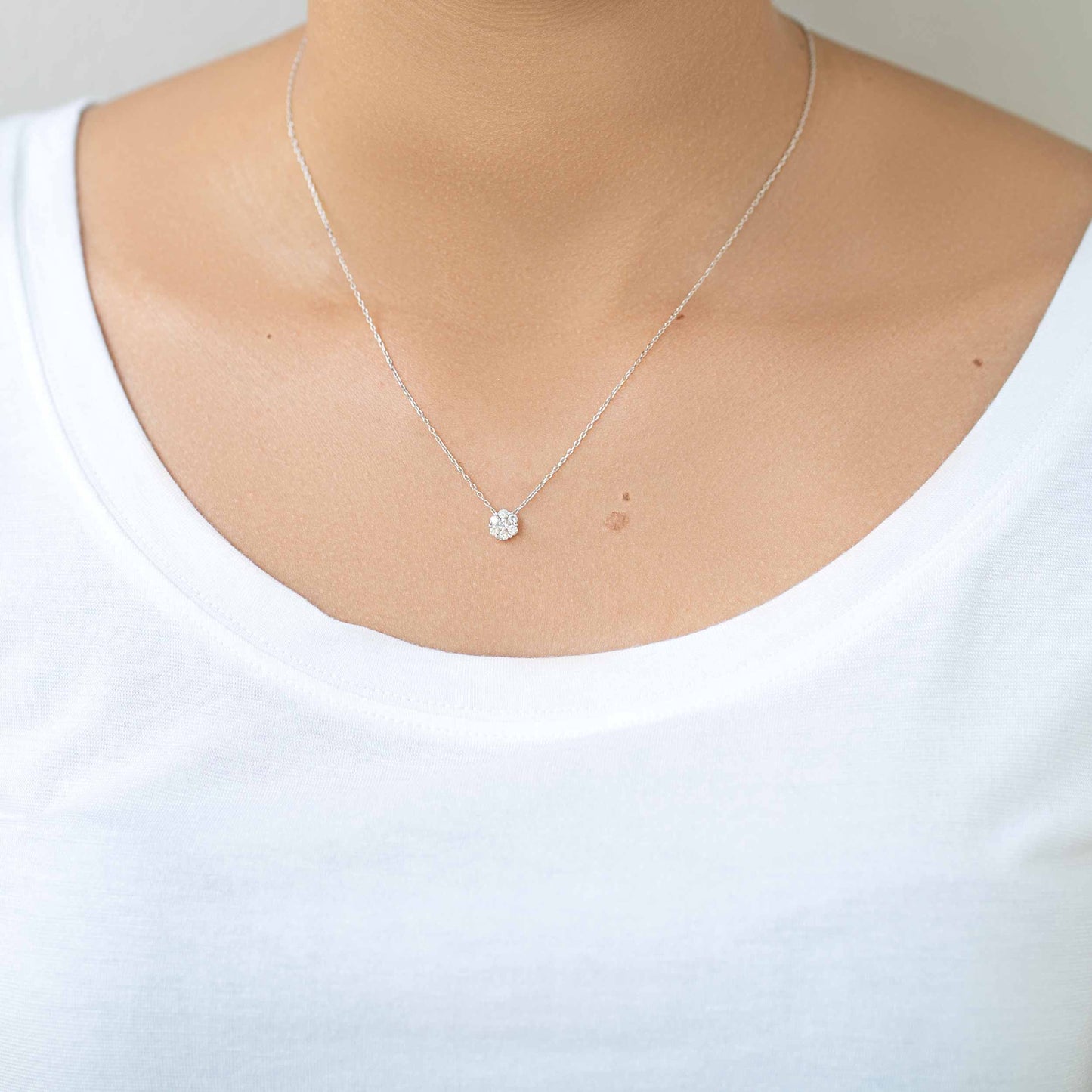 Add a touch of luxury with our 18K white gold diamond flower pendant necklace. Elevate your style with this elegant and timeless accessory."