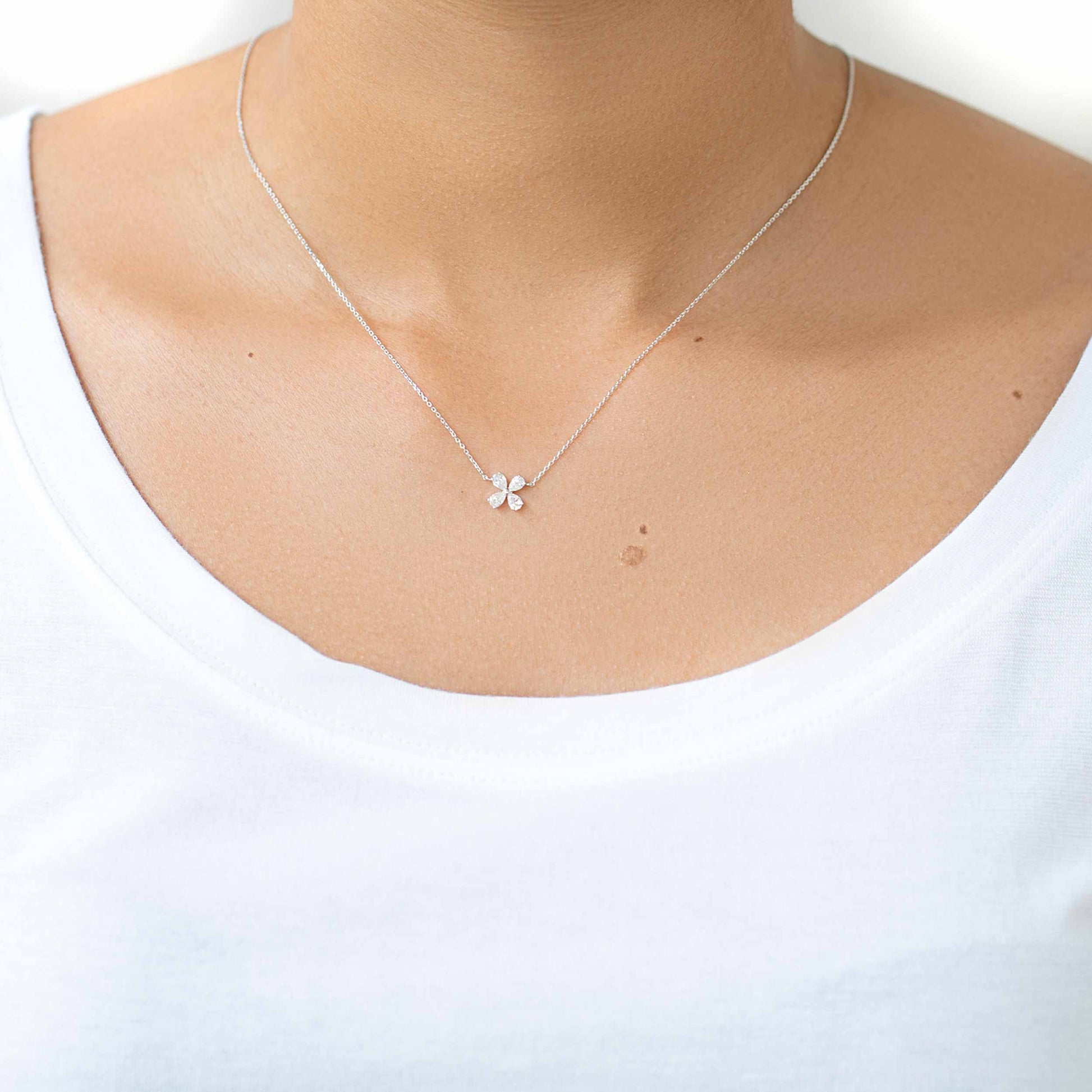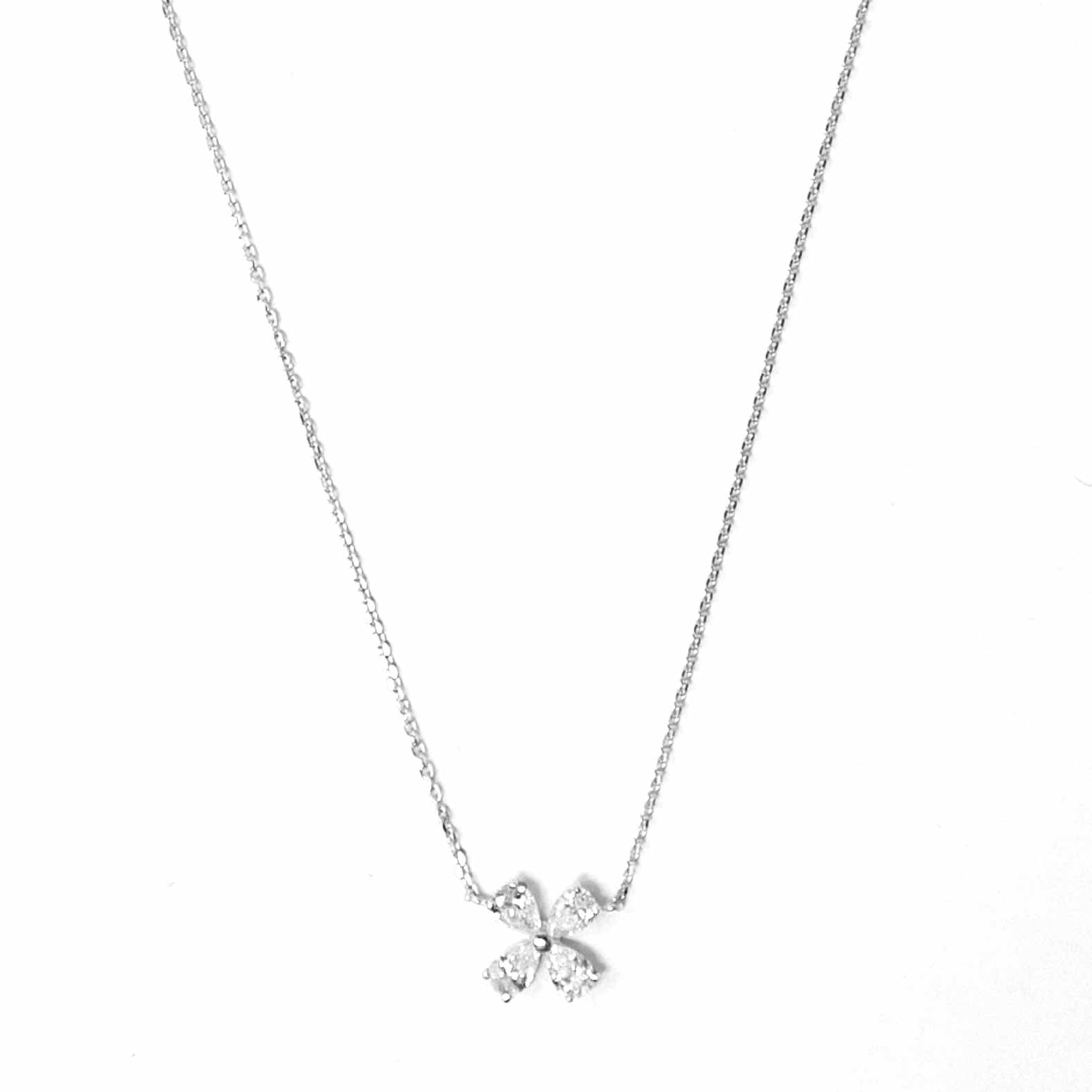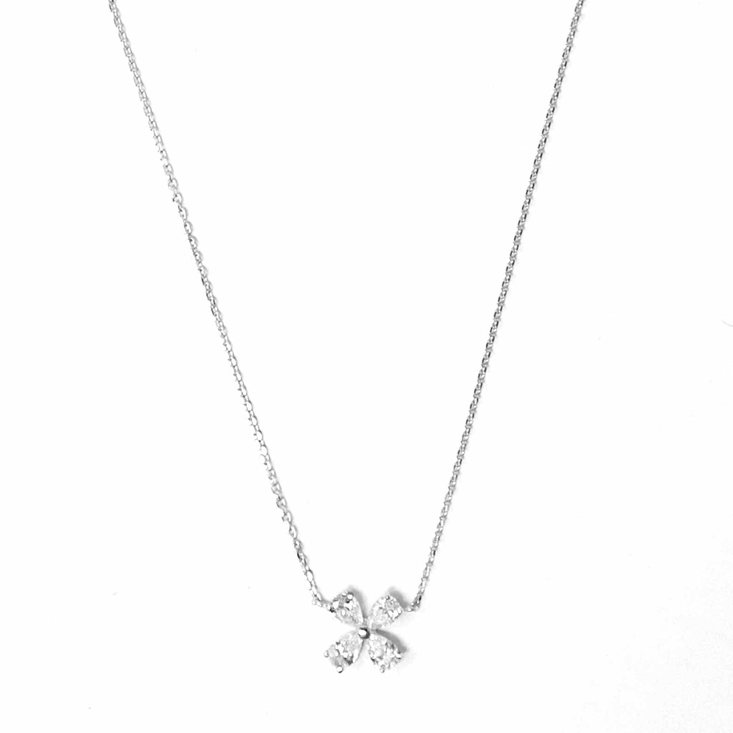Add a touch of luxury with our 18K white gold diamond flower pendant necklace. Elevate your style with this elegant and timeless accessory.