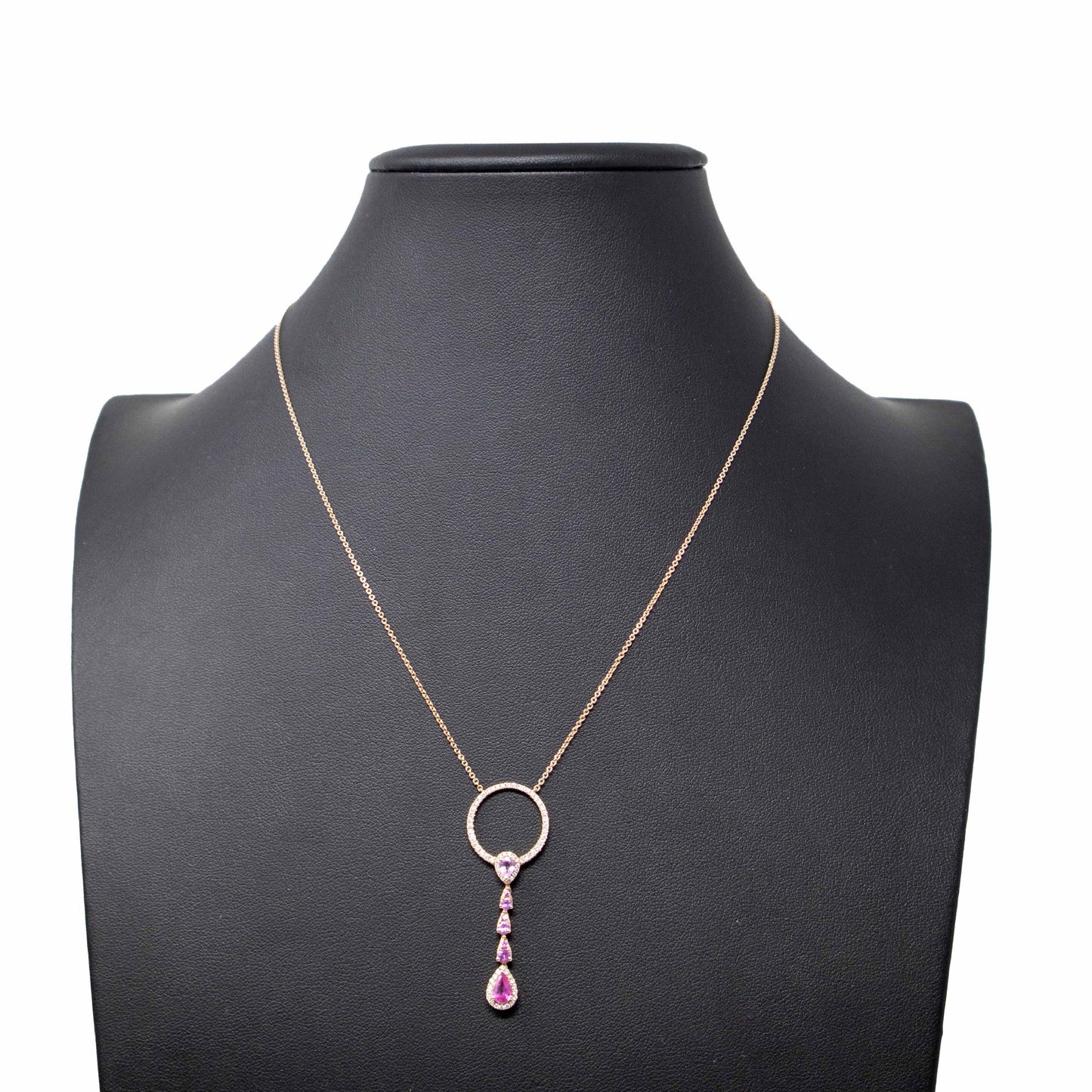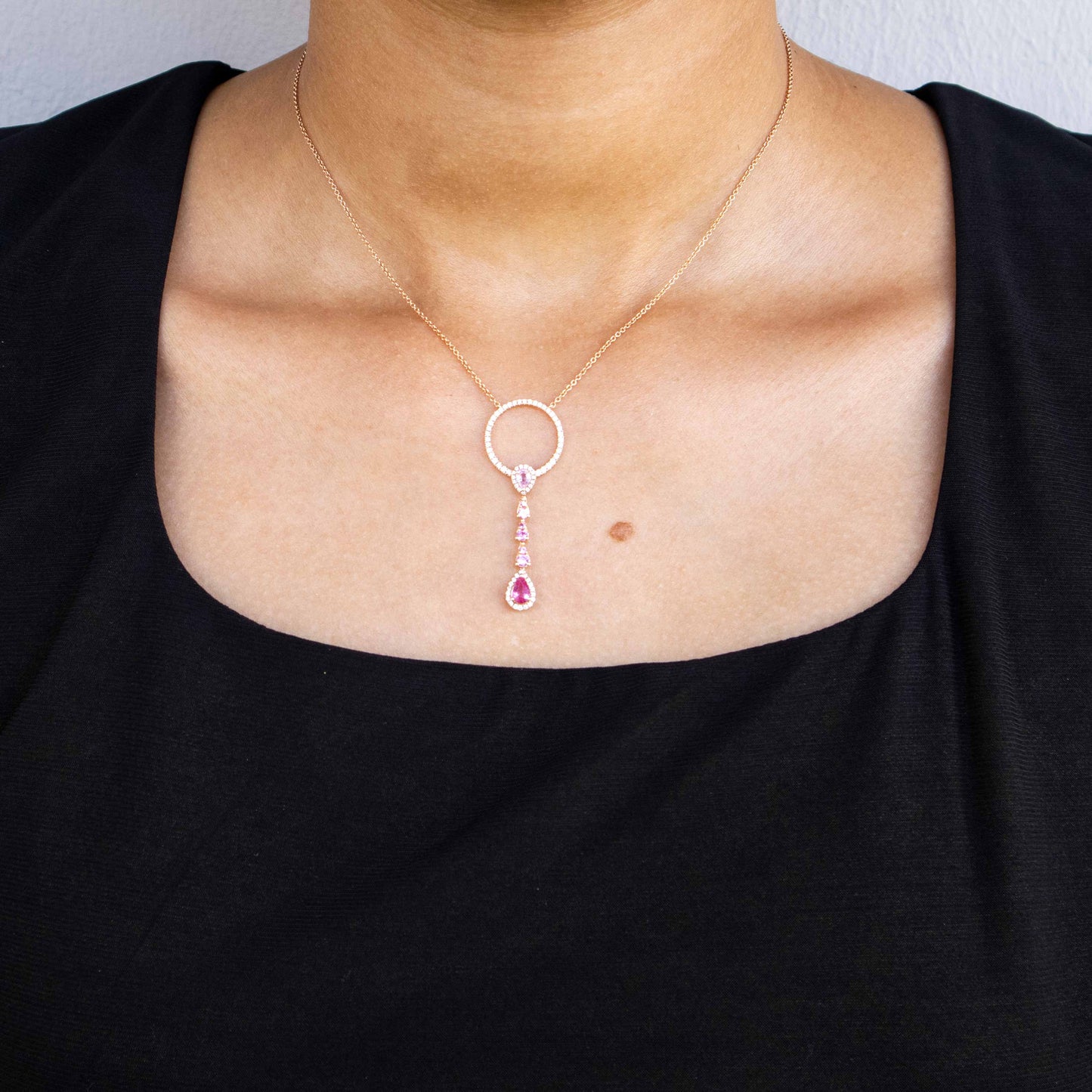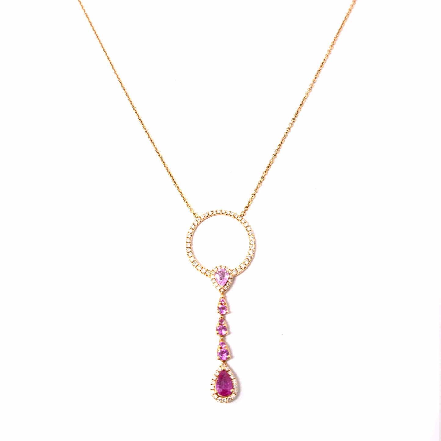 18K Rose Gold Diamond, Pink Sapphires and Ruby Drop Necklace