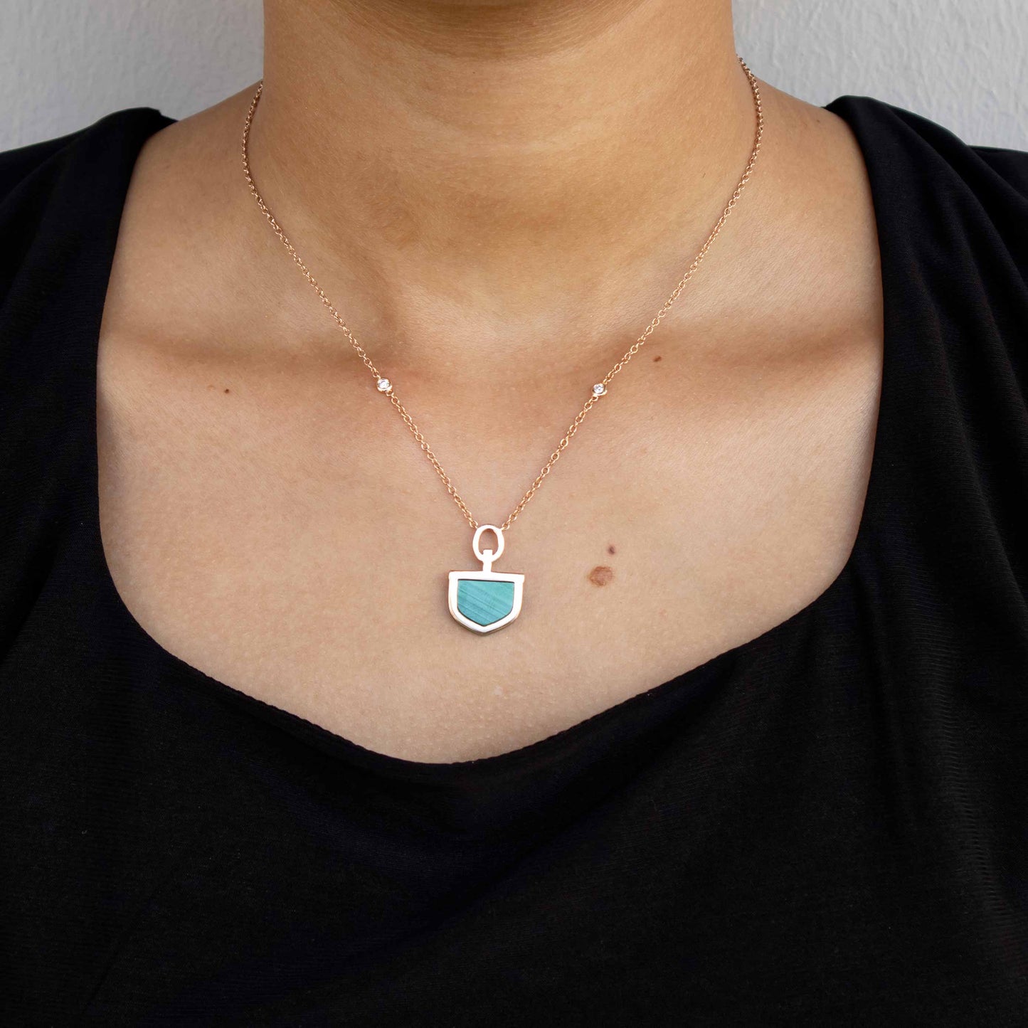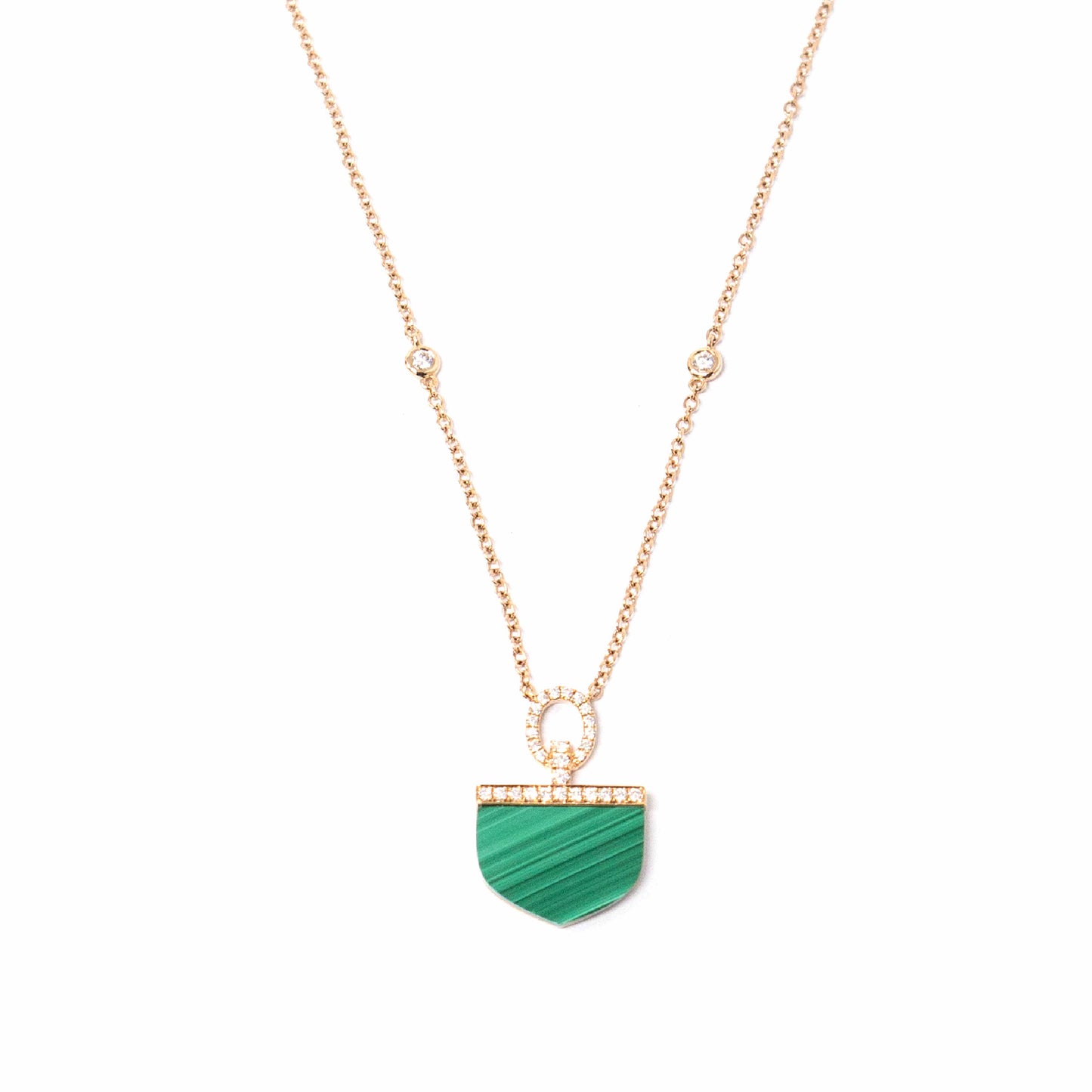 18K Rose Gold Diamond and Malachite Diamond Necklace
