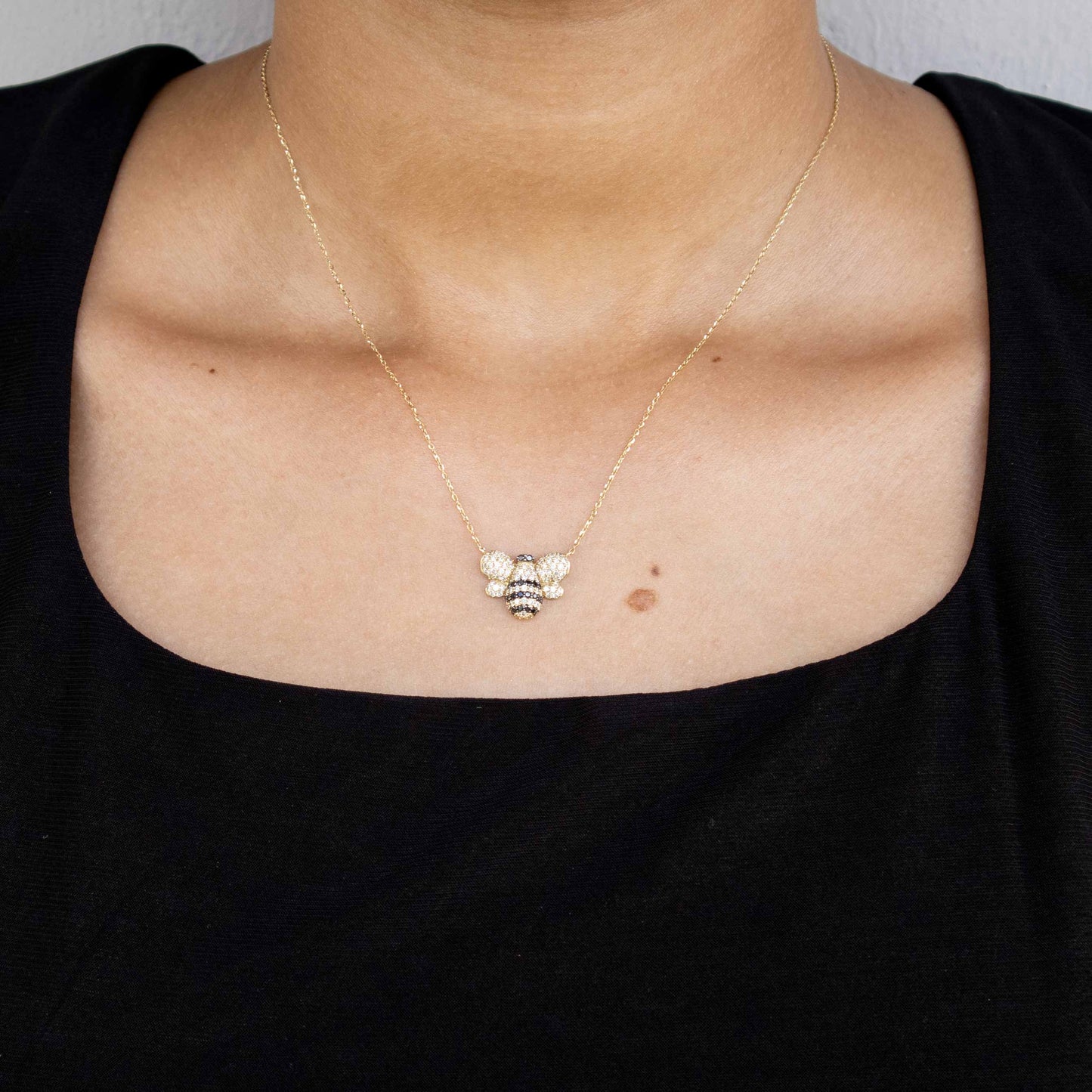 14K Yellow Gold Bumble Bee Diamond Pendant Necklace