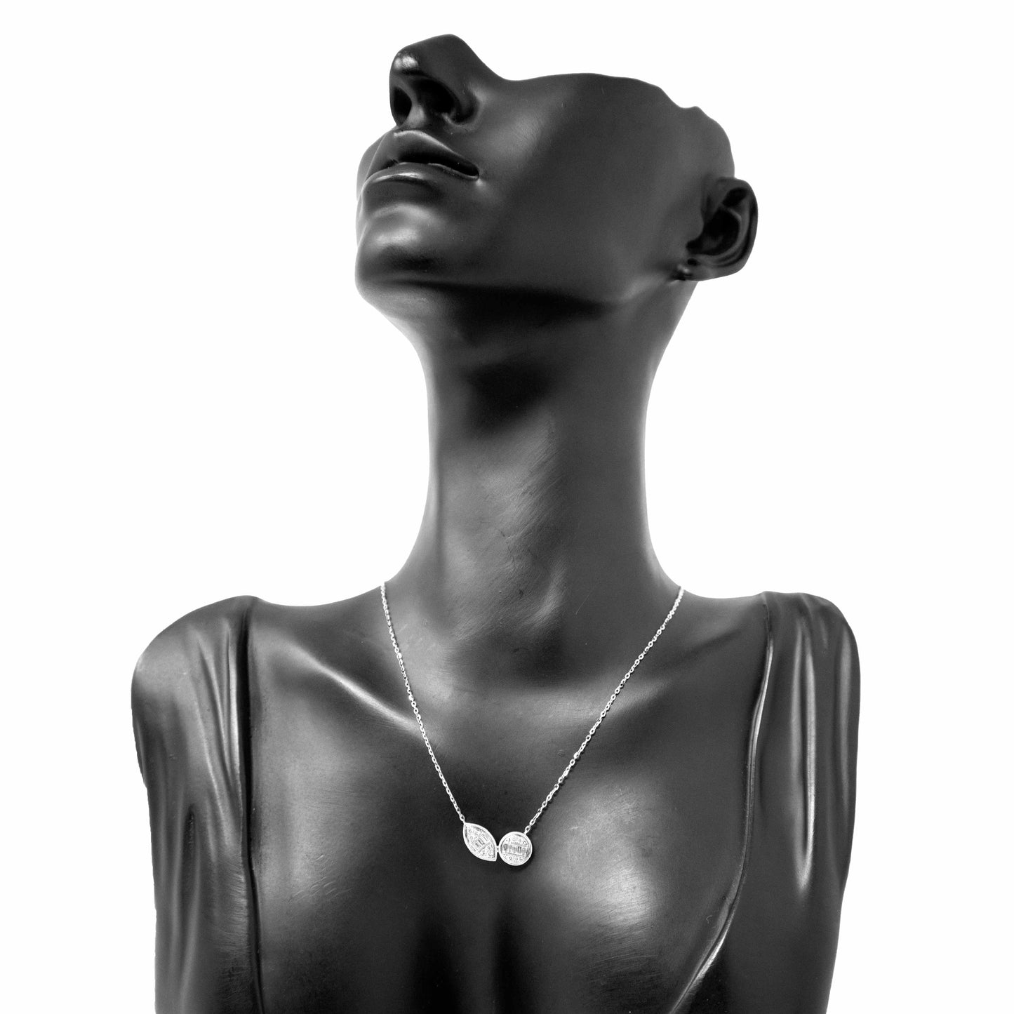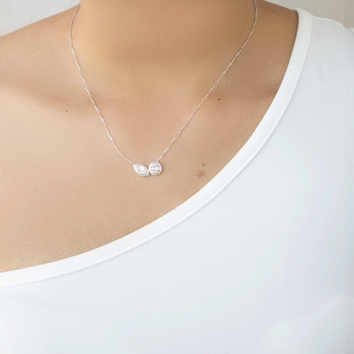Elegant and feminine, this 14k white gold toi et moi necklace features a marquise and round setting. A dazzling look, this diamond necklace brings the sparkle to any occasion. Even the simplest of shine bright diamond necklaces offer elegance, and this one is no exception.