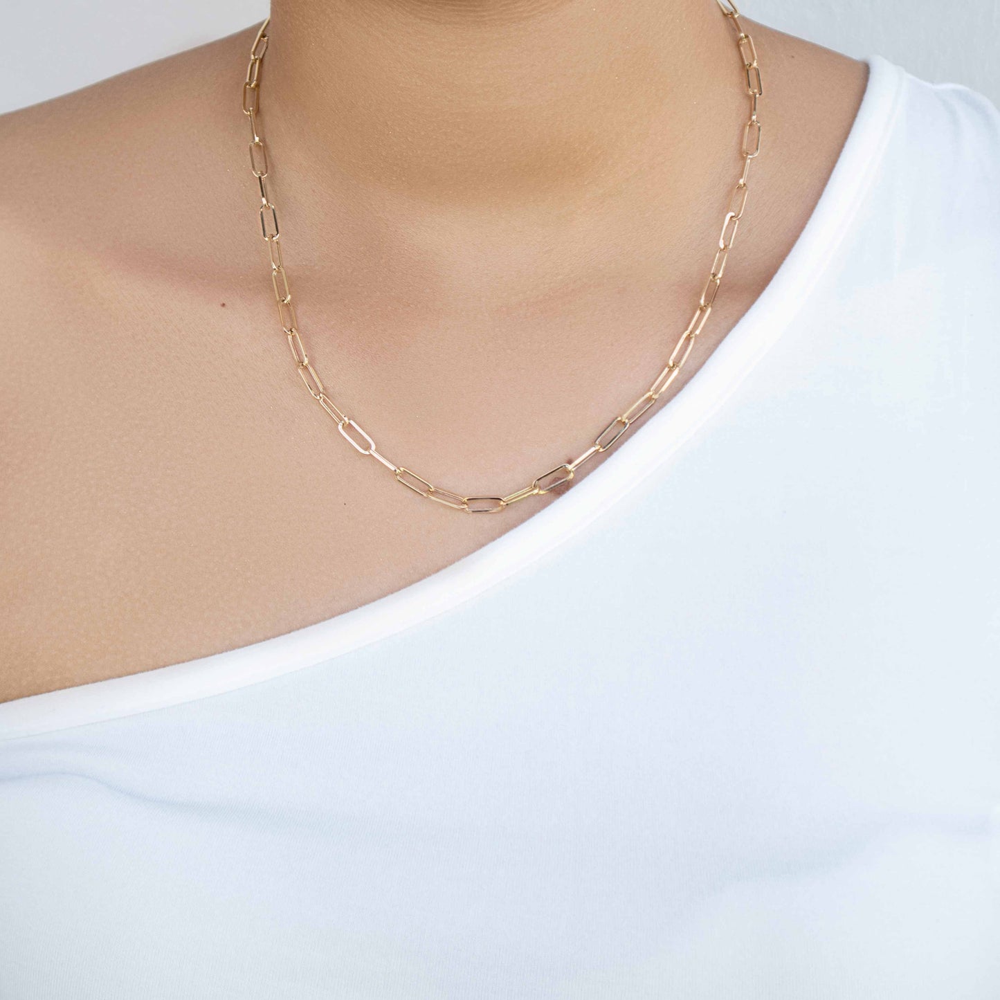 Elevate your look with our 14K yellow gold simple paperclip chain. Discover timeless elegance and style. Shop now.