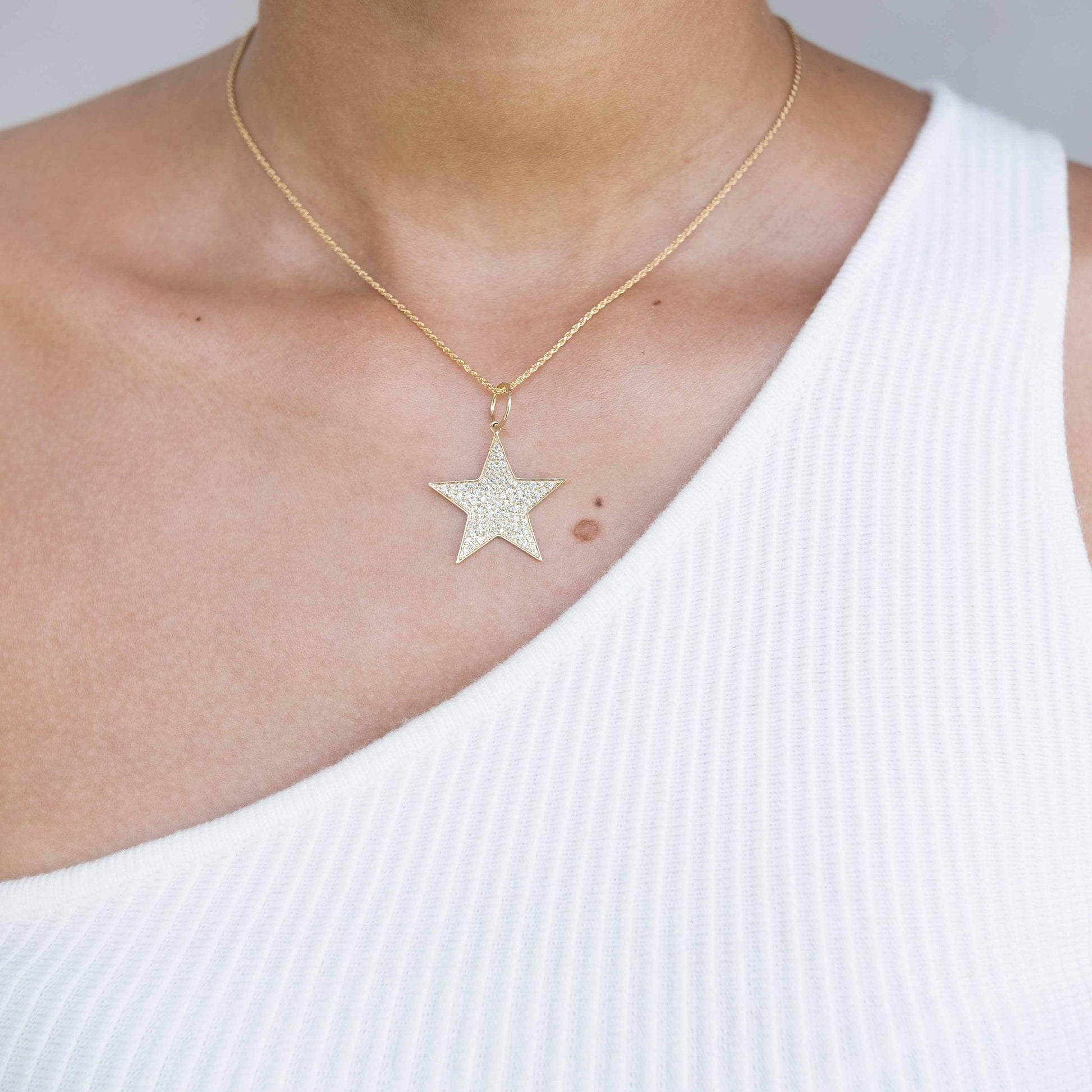 This pendant features a stunning star design, symbolizing dreams, guidance, and aspirations. One-of-a-kind, with pave diamonds creating a breathtaking sparkle. Wear alone or stacked with other pendants or necklaces.