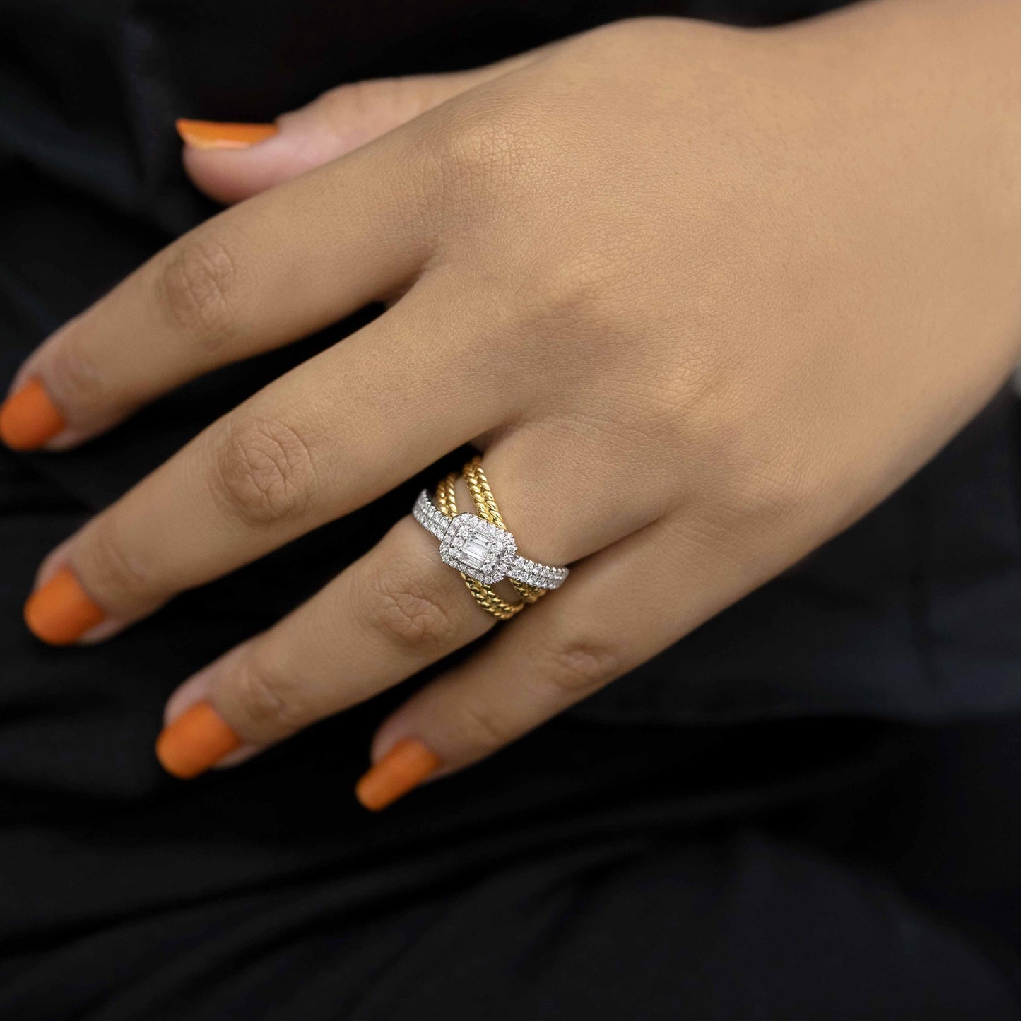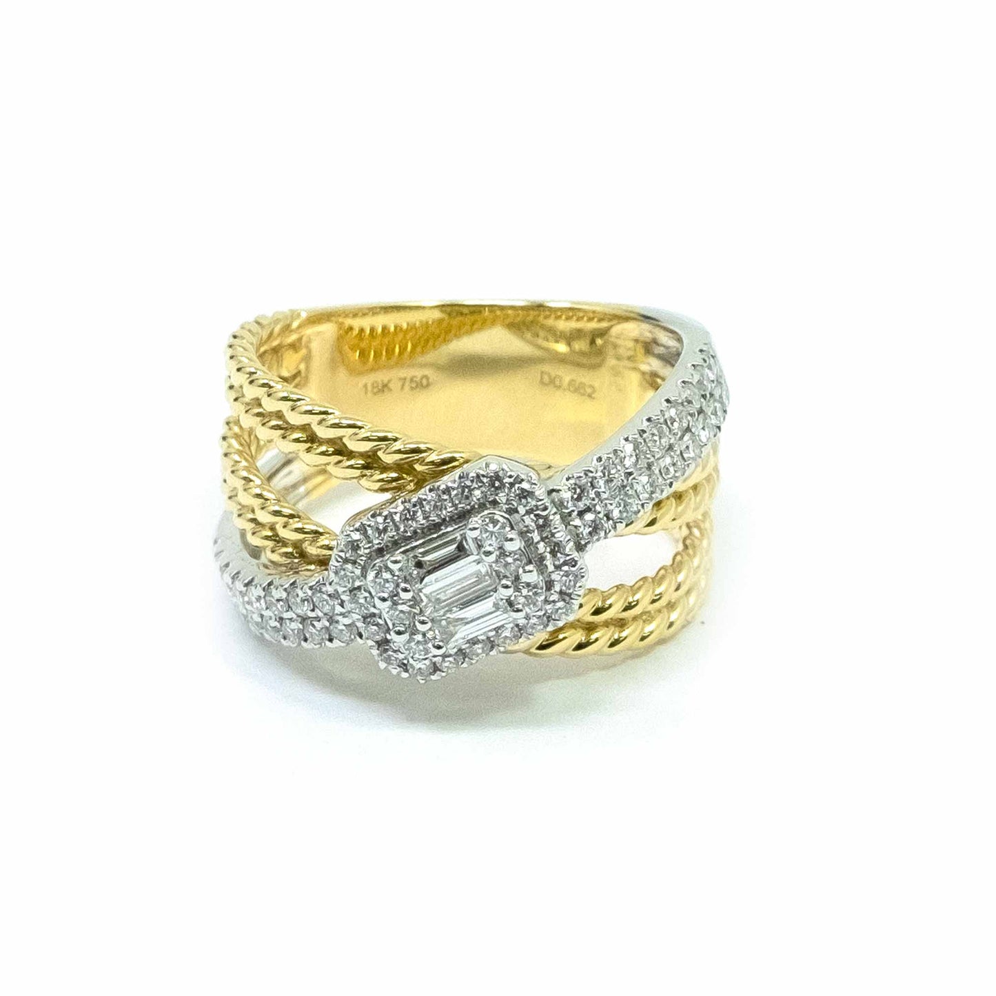 Unleash your style with our 18K two tone gold diamond statement ring. A dazzling addition to any ensemble.