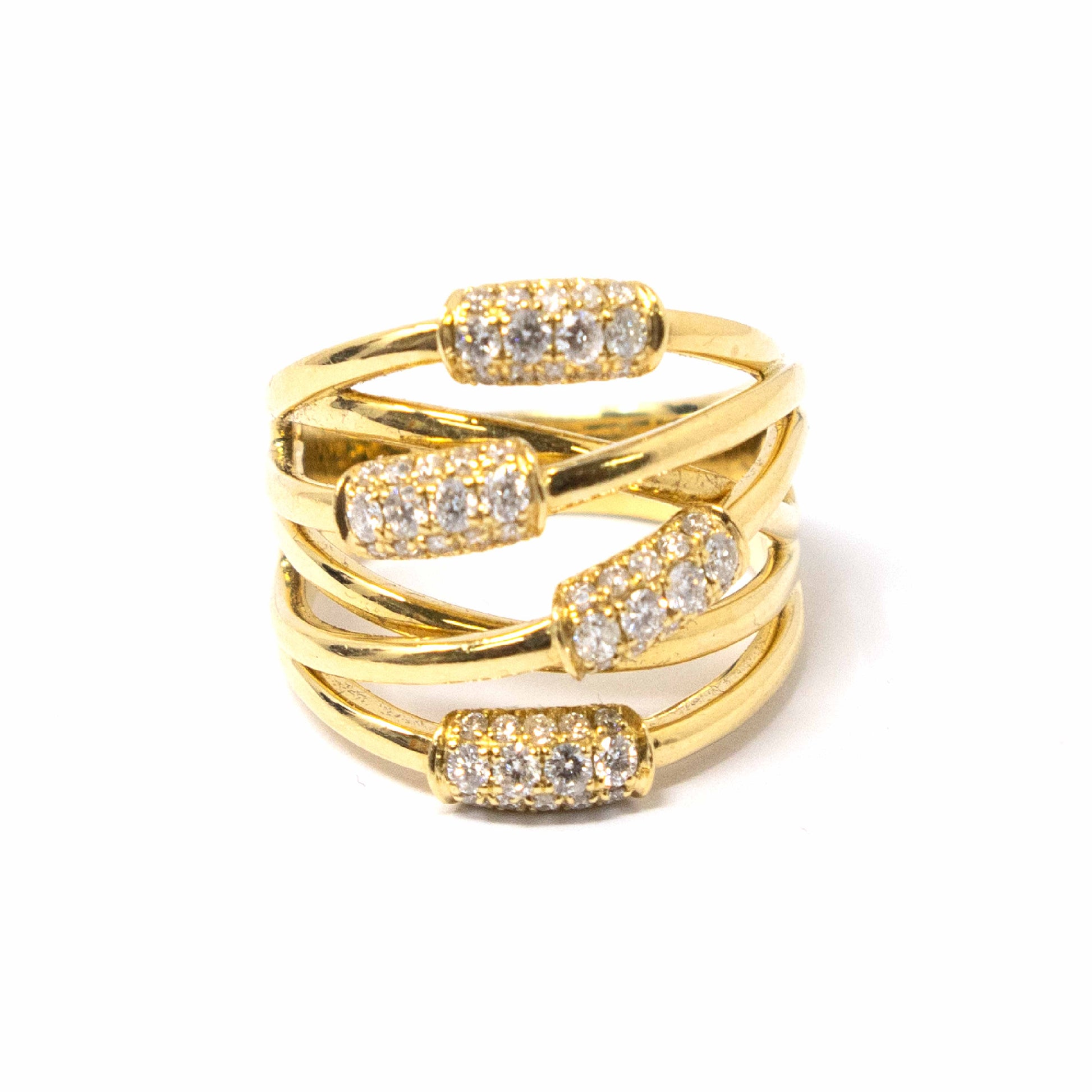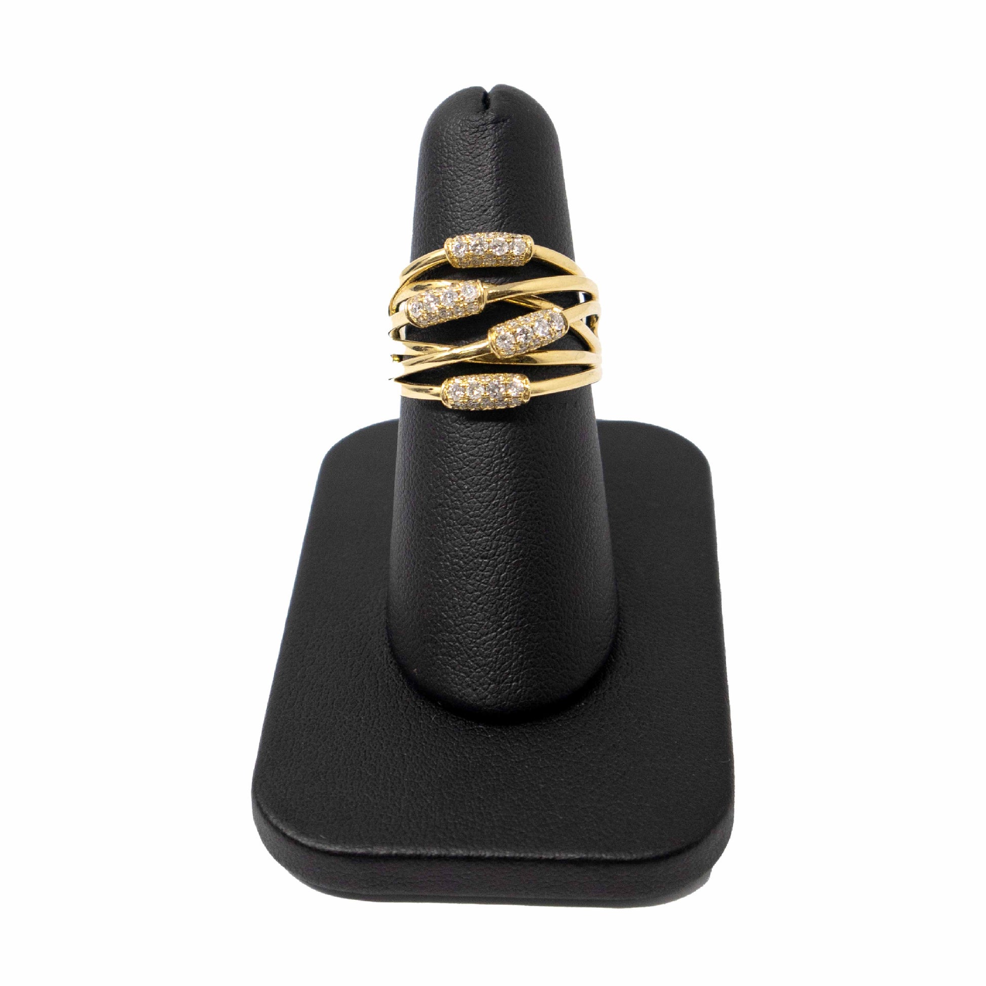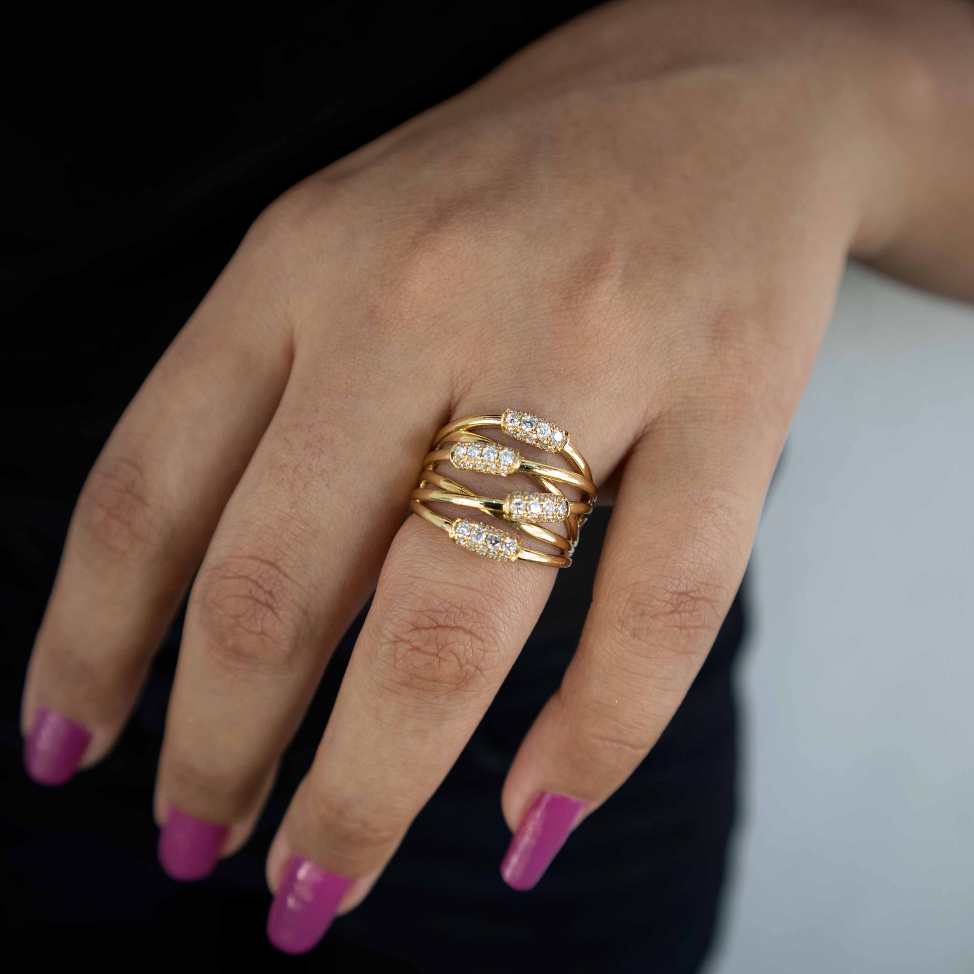 Get ready to dazzle with our 18K yellow gold and diamond 5 band ring! This glamorous and playful piece is a surefire way to add some sparkle to your look.