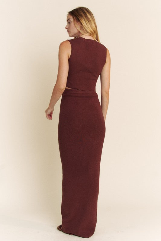Hers and Mine Maxi Skirt with Matching Vest Top Sweater Set