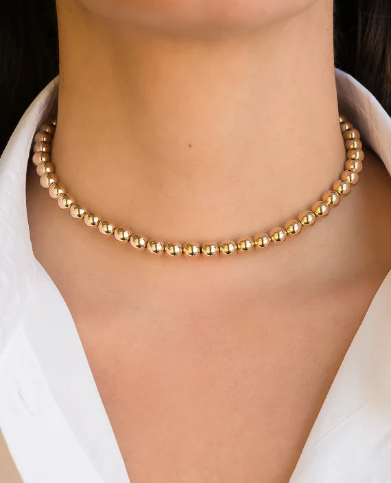 - 5mm Gold Beads. 14 or 16 inches. Water Resistant