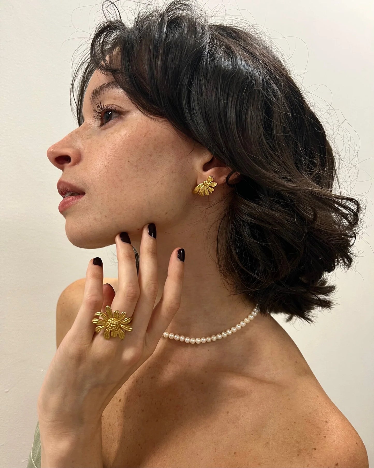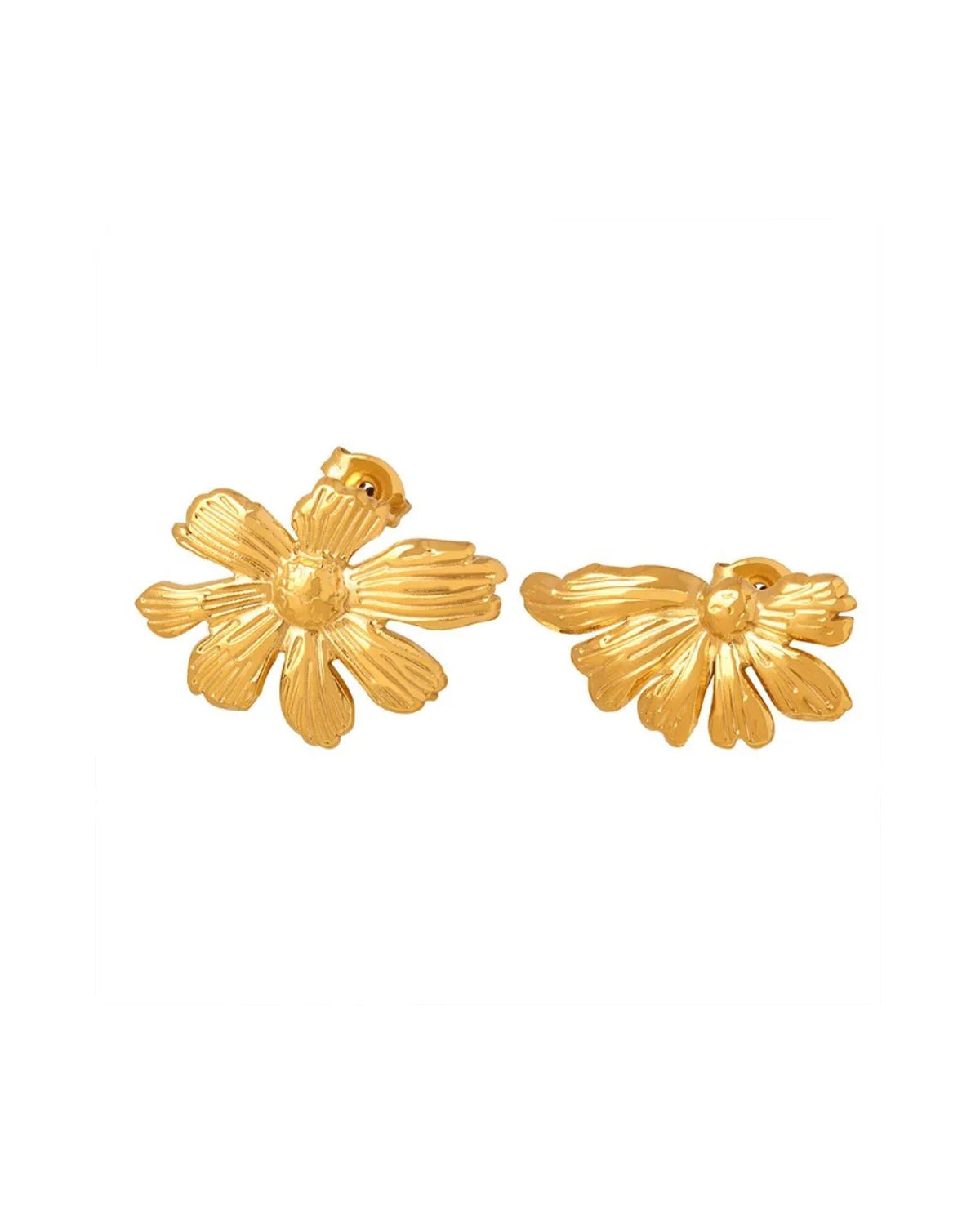 - It is made from high-quality materials and plated with 18K gold, giving it a radiant and luxurious appearance. The adjustable feature ensures a perfect fit for any finger size, offering comfort and convenience. Moreover, the ring is water-resistant, making it suitable for everyday wear without worrying about damage from water exposure. Whether you're dressing up for a special occasion or adding a touch of whimsy to your everyday style, this Sunflower Asymmetric Studs is a delightful choice that effortlessly complements any look.