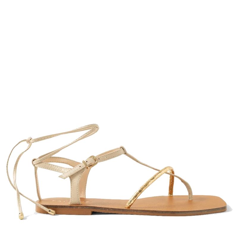 Step into effortless elegance with these flat sandals featuring a beautiful blend of beige and metallic gold. Designed with slender crisscrossing straps for a secure and flattering fit, they add a touch of shimmer to any outfit while keeping you comfortable all day long.
