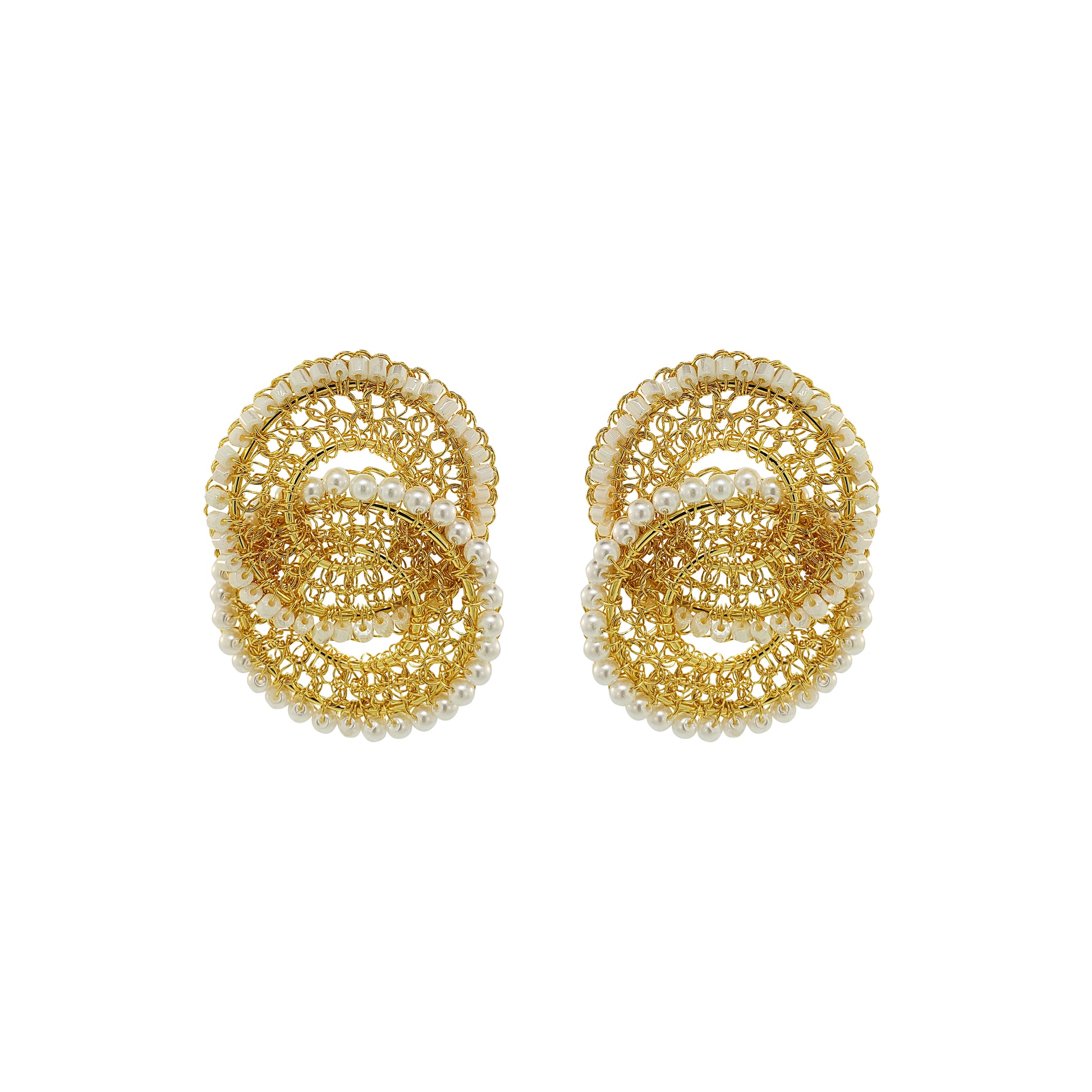 These double link hand-crocheted mesh earrings were fabricated by skilled Brazilian artisans. The shiny 18 karat gold filled wire crochet earrings create a statement look! The sparkling pearly crystals are supplemental to the fine craft artwork spent in every piece of my jewelry. Made from non-allergenic (hypoallergenic) and nickel-free material. Stunning jewelry that will last for a lifetime. Each pair of earrings takes hours to finish. The result is a remarkable piece of jewelry. This piece is entirely hand-crocheted, 18 karat Gold Filled and made in Brazil.