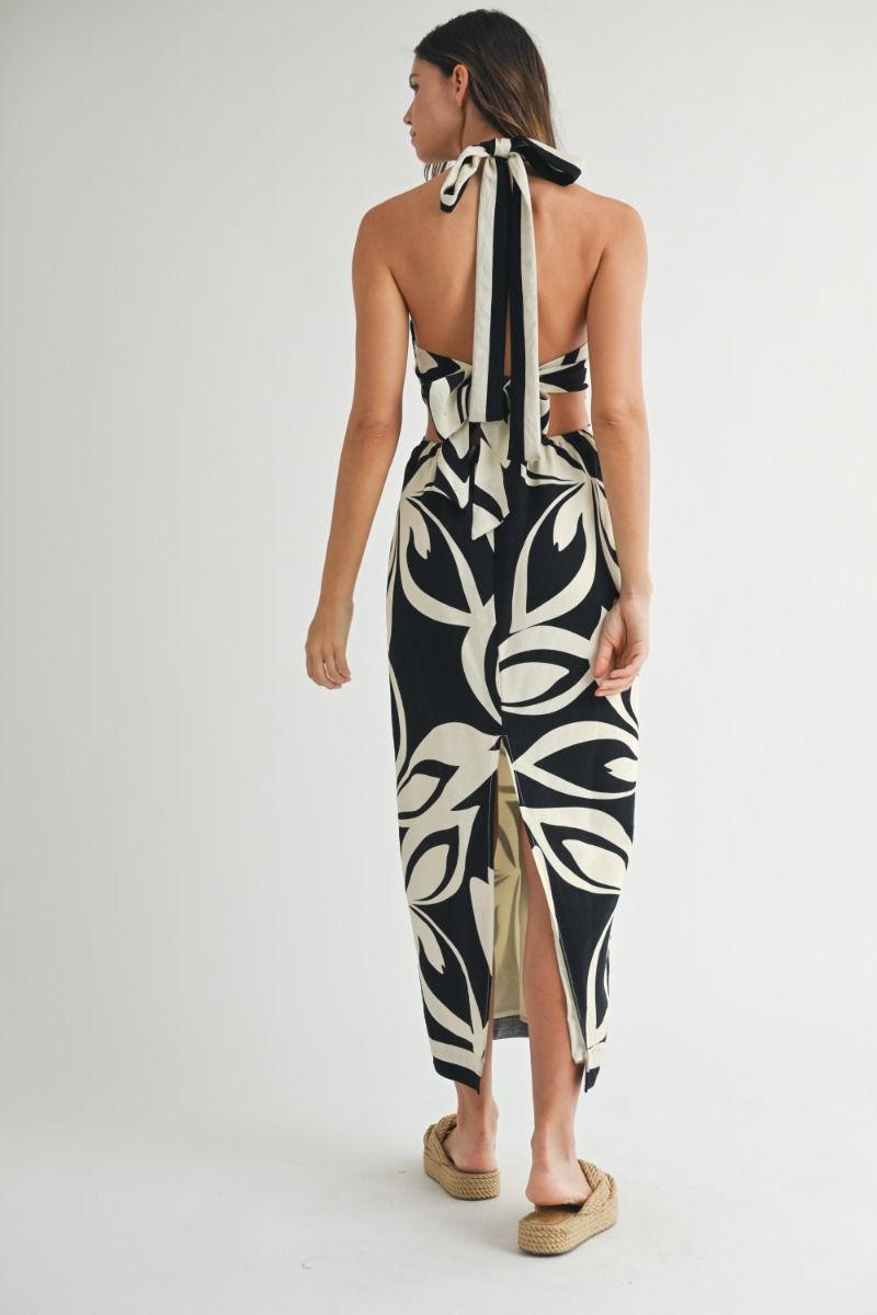 Mable Printed Halter Neck Midi Dress