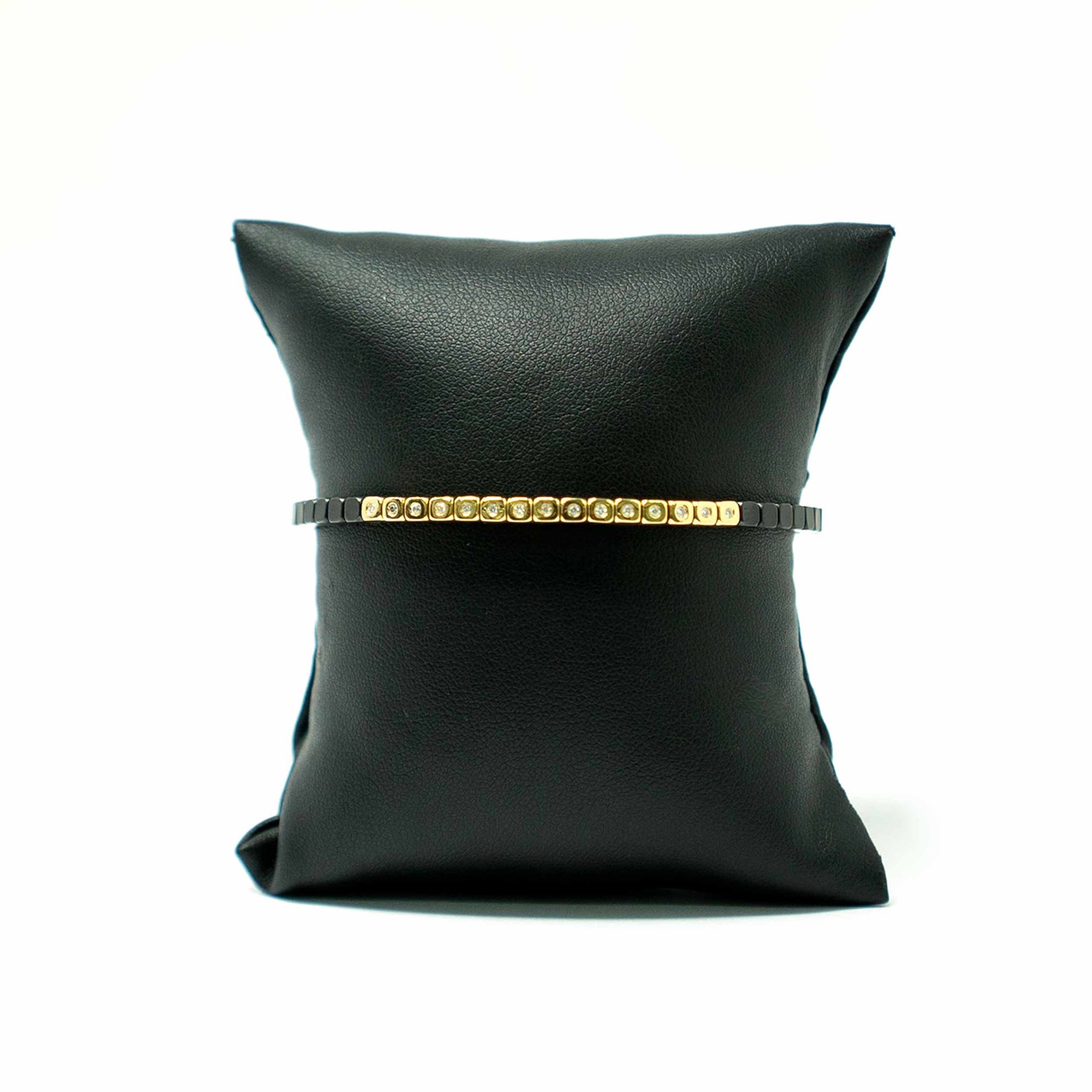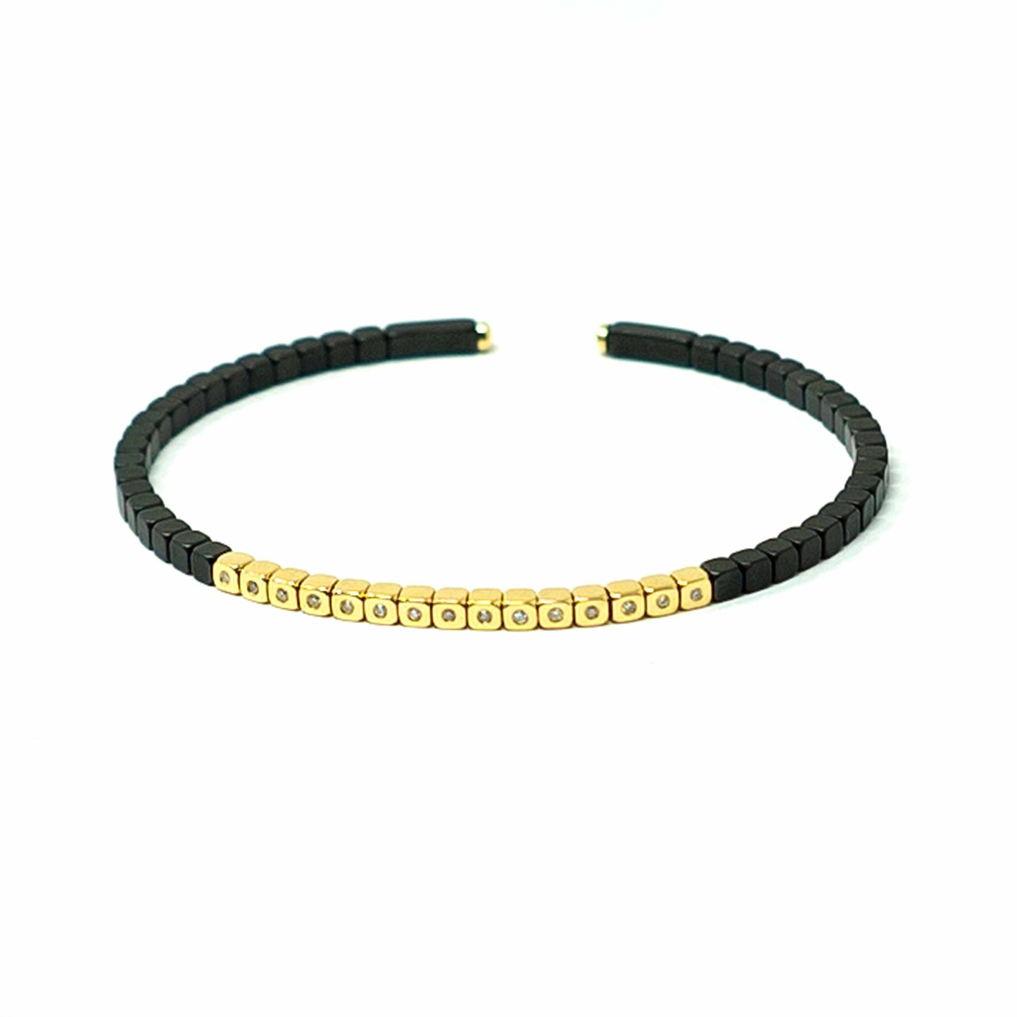 Make a statement with our 18K yellow gold and ceramic man diamond bangle, the perfect blend of luxury and modern style.