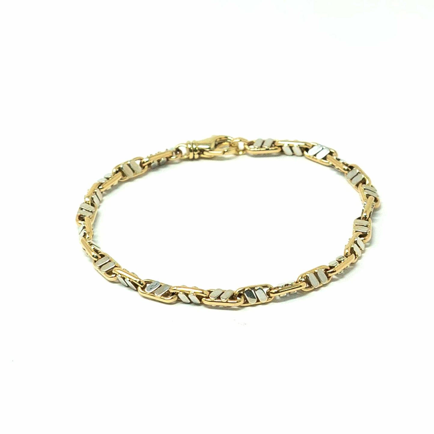 Elevate your style with this yellow and white gold fancy link bracelet, elegant and classic look, perfect for every occasion.