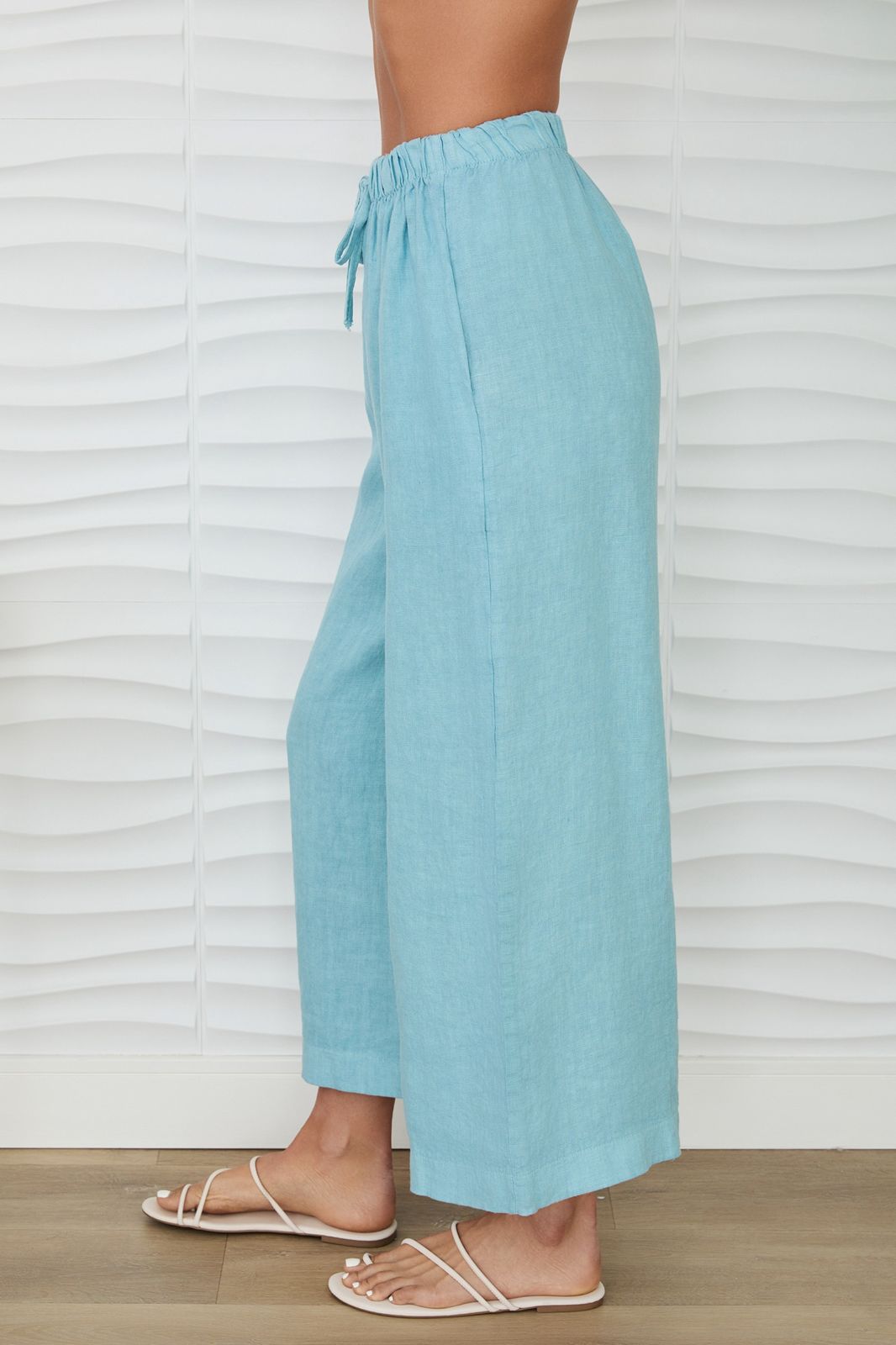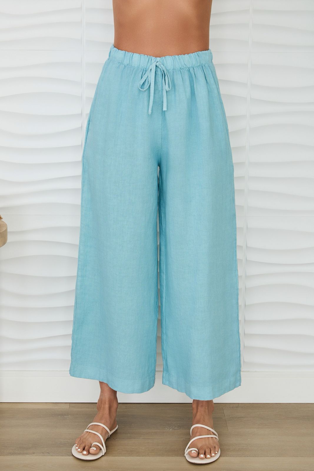 Milio Milano Drawstring Waistband Wide Leg Linen Pants