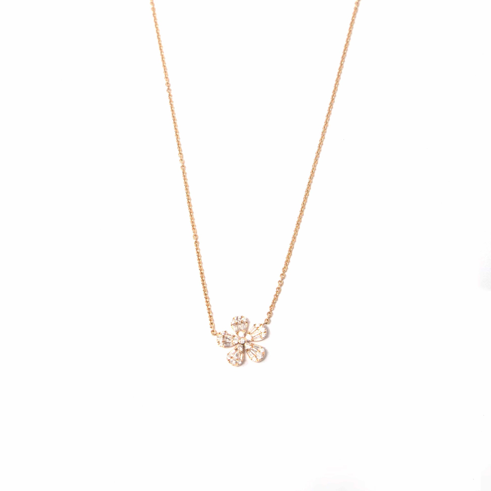 Radiate charm with our 18K rose gold diamond mini flower necklace. Perfect for adding a touch of whimsical elegance to your style.