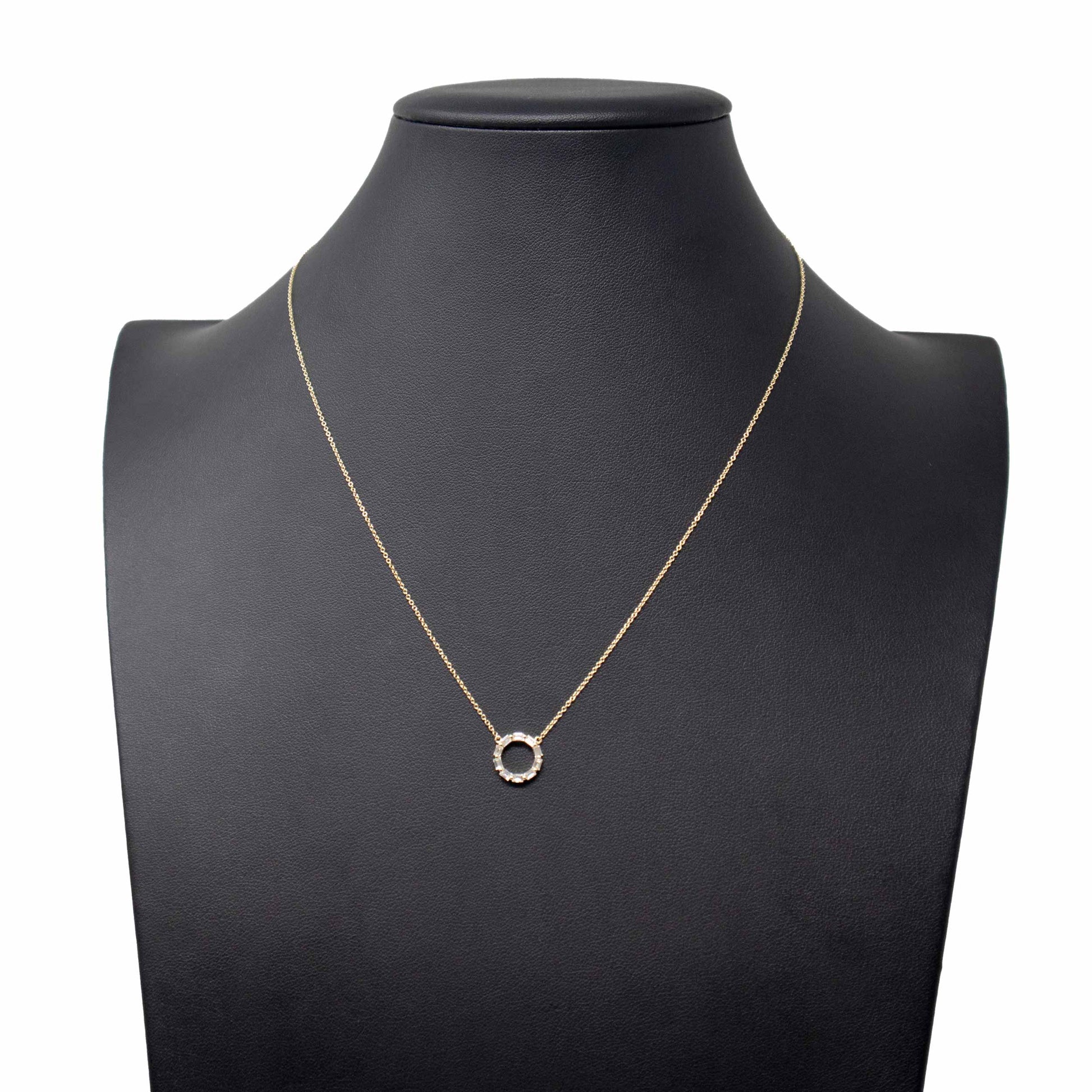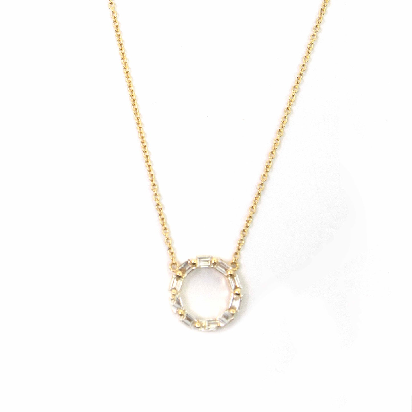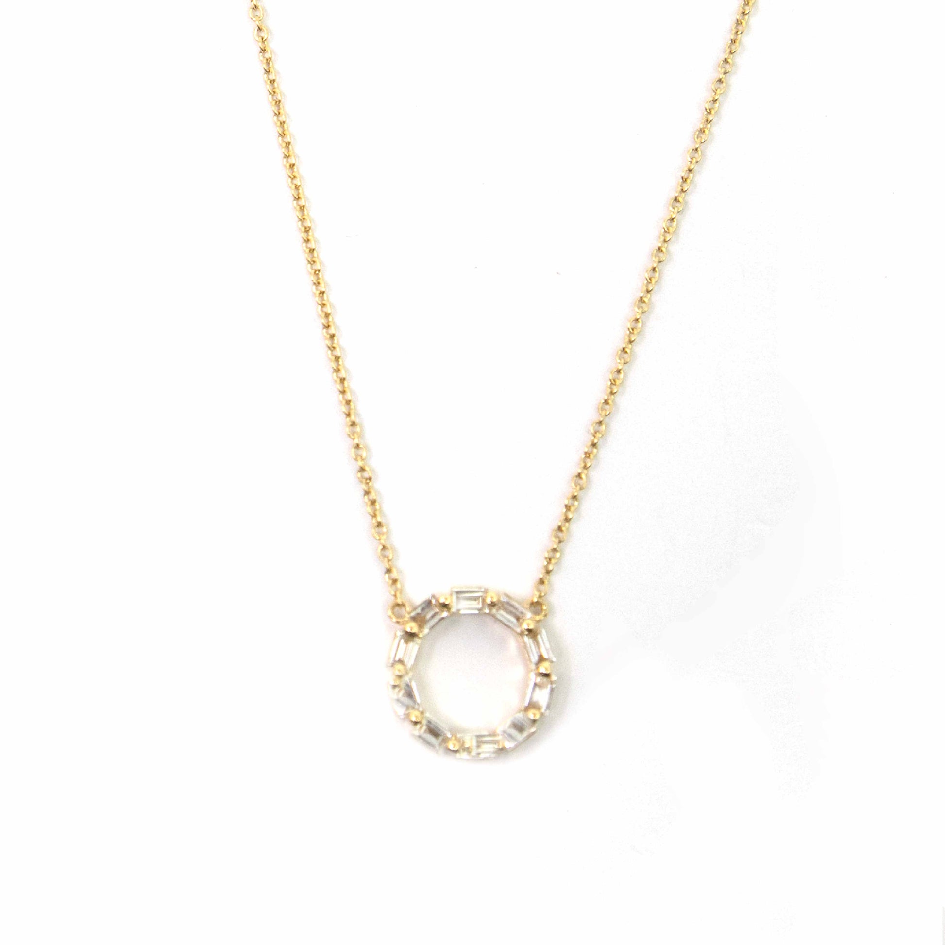 Elevate your style with our 14K yellow gold baguette circle pendant chain - a timeless statement of elegance.