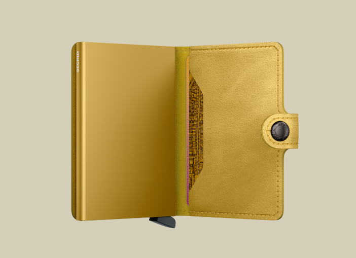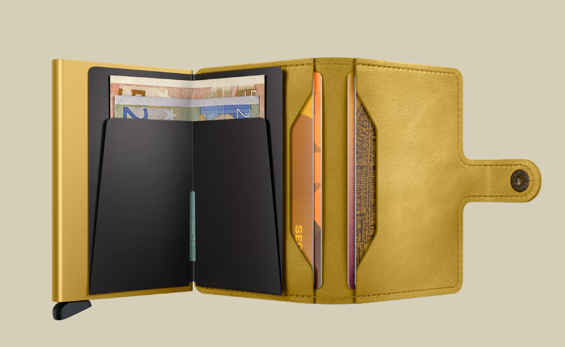 Small in size and surprisingly large in storage capacity, the mini wallet combines the best of both worlds. The exterior holds banknotes, receipt and cards, white the aluminium Cardprotector allows you to slide out cards with one simple motion and protects them from bending, breaking and unwanted wireless communication.