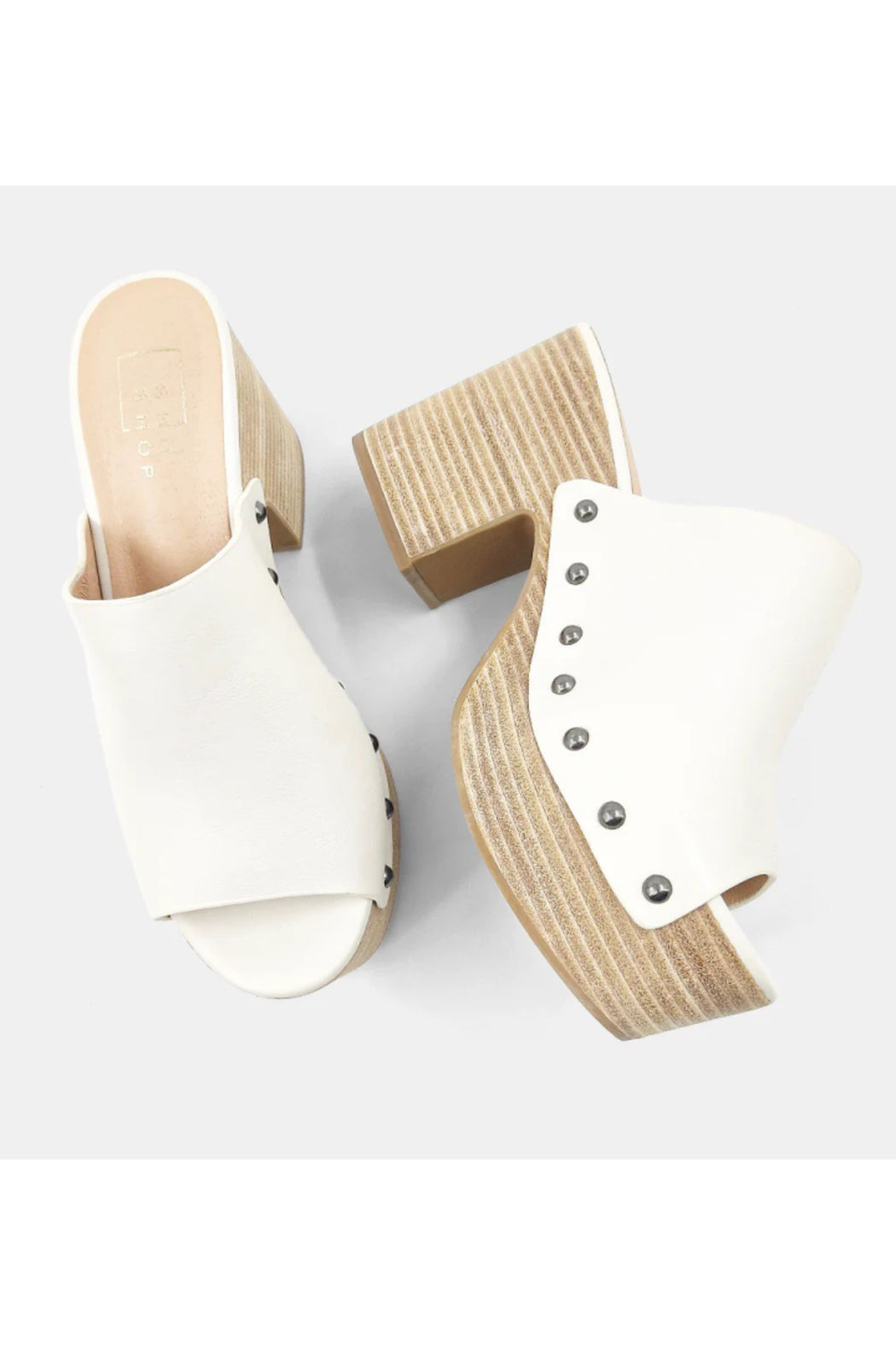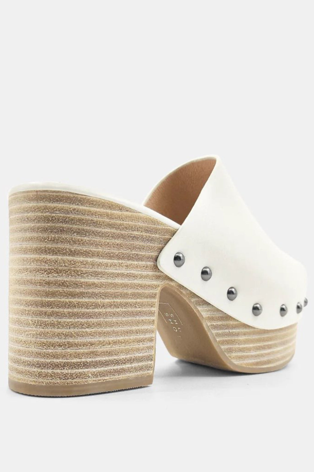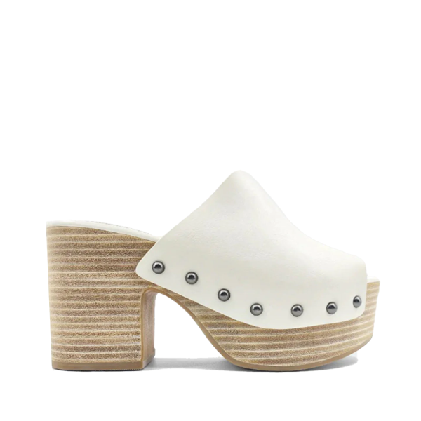 Our Gina wedges are inspired by vintage '70s clogs, This pair crafted from super soft faux leather upper, a stacked wedge heel and feature metallic studs for some extra shine. Slip them on with everything from cropped jeans to dresses.