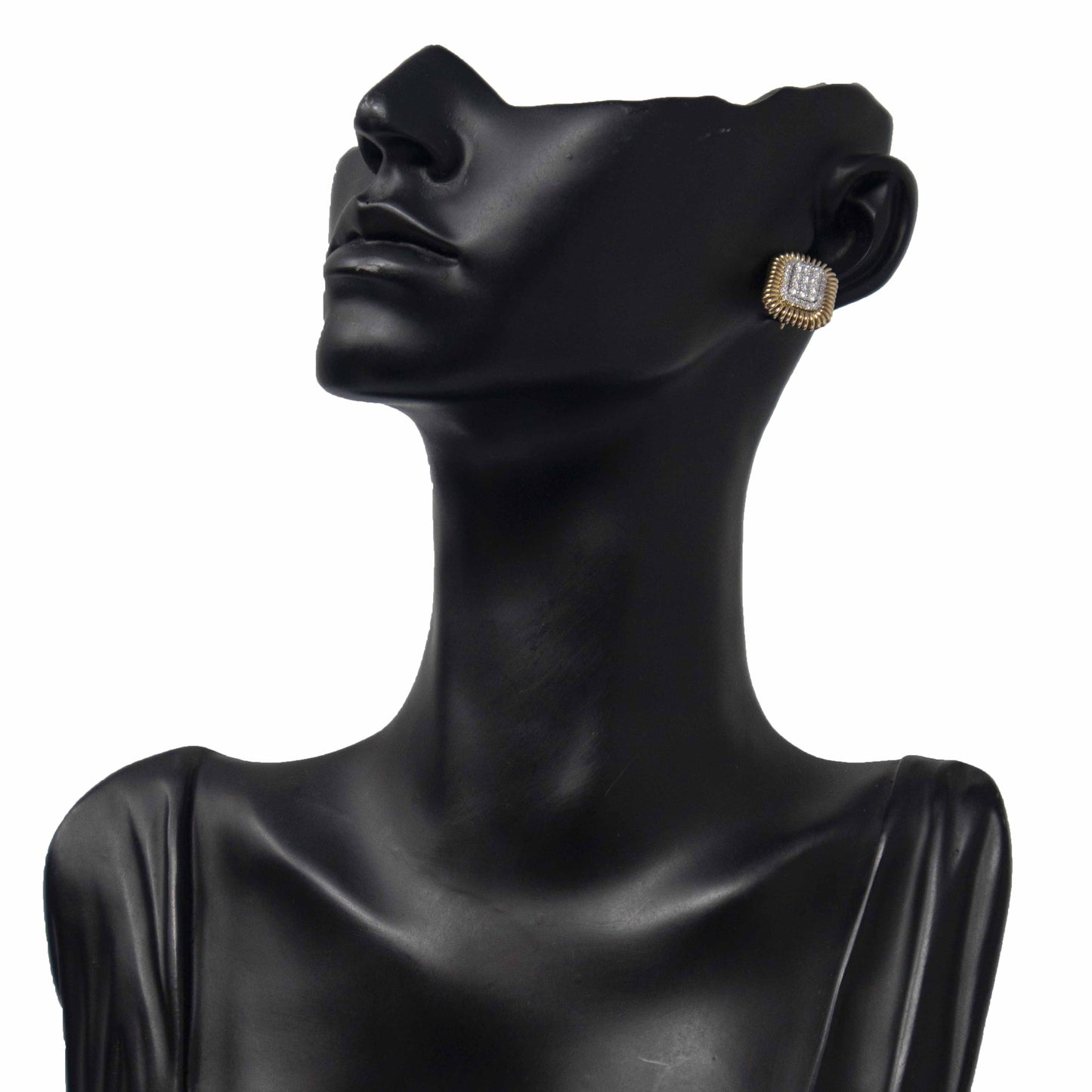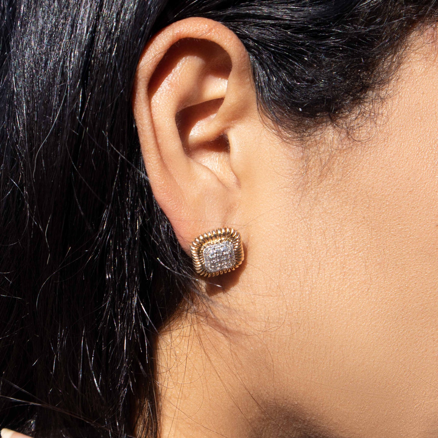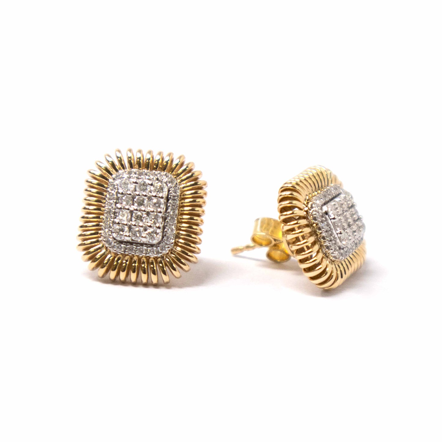 14K Square Pave Diamond Yellow Gold Wire Earring