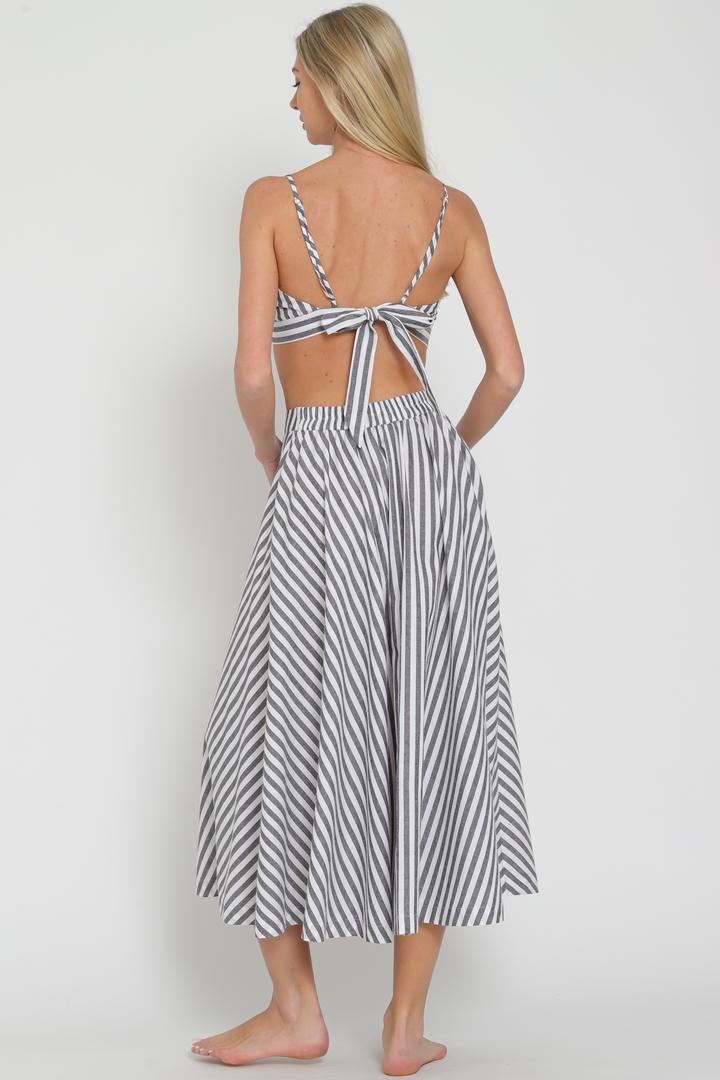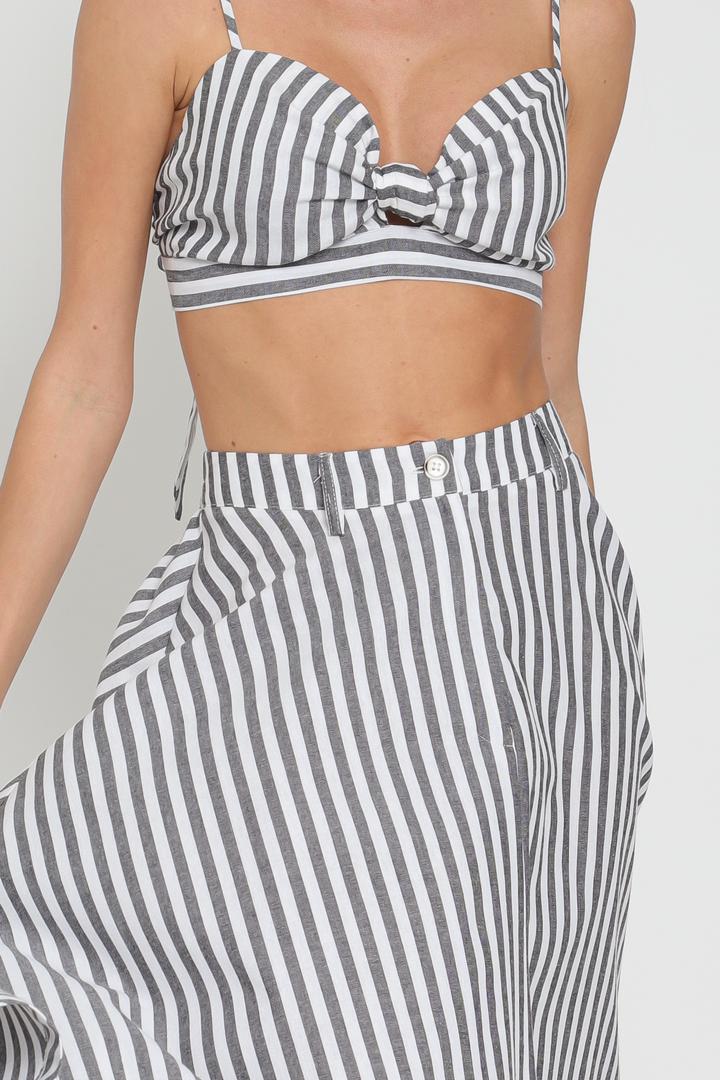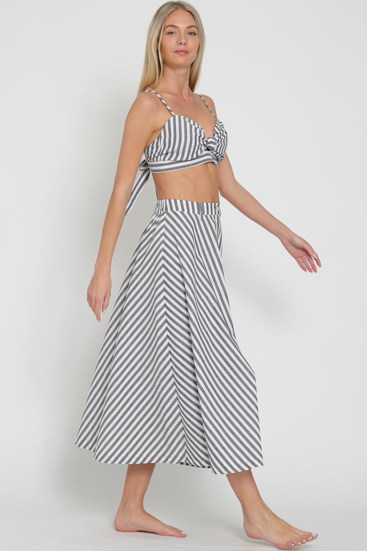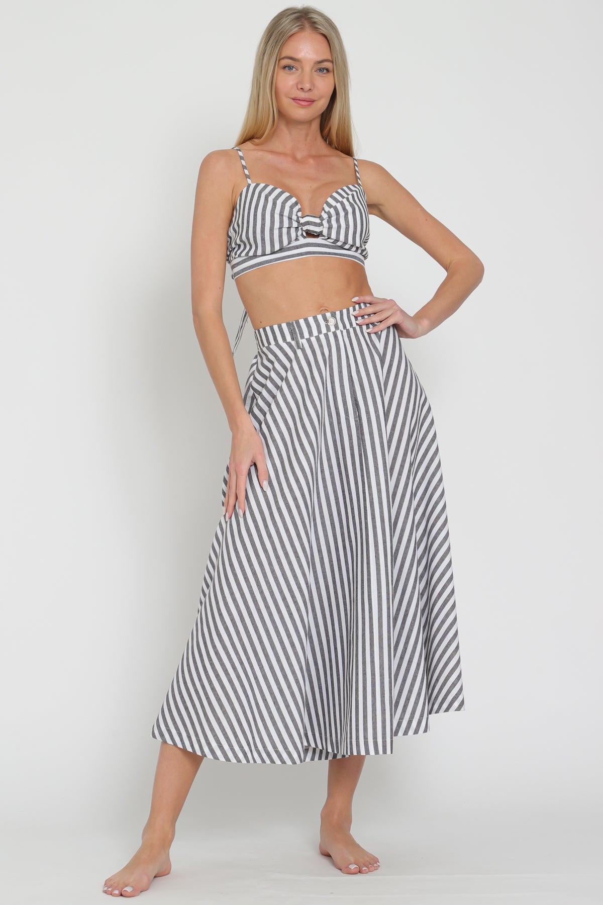 Aakaa Bra Top & High Waisted Stripe Midi Skirt Set