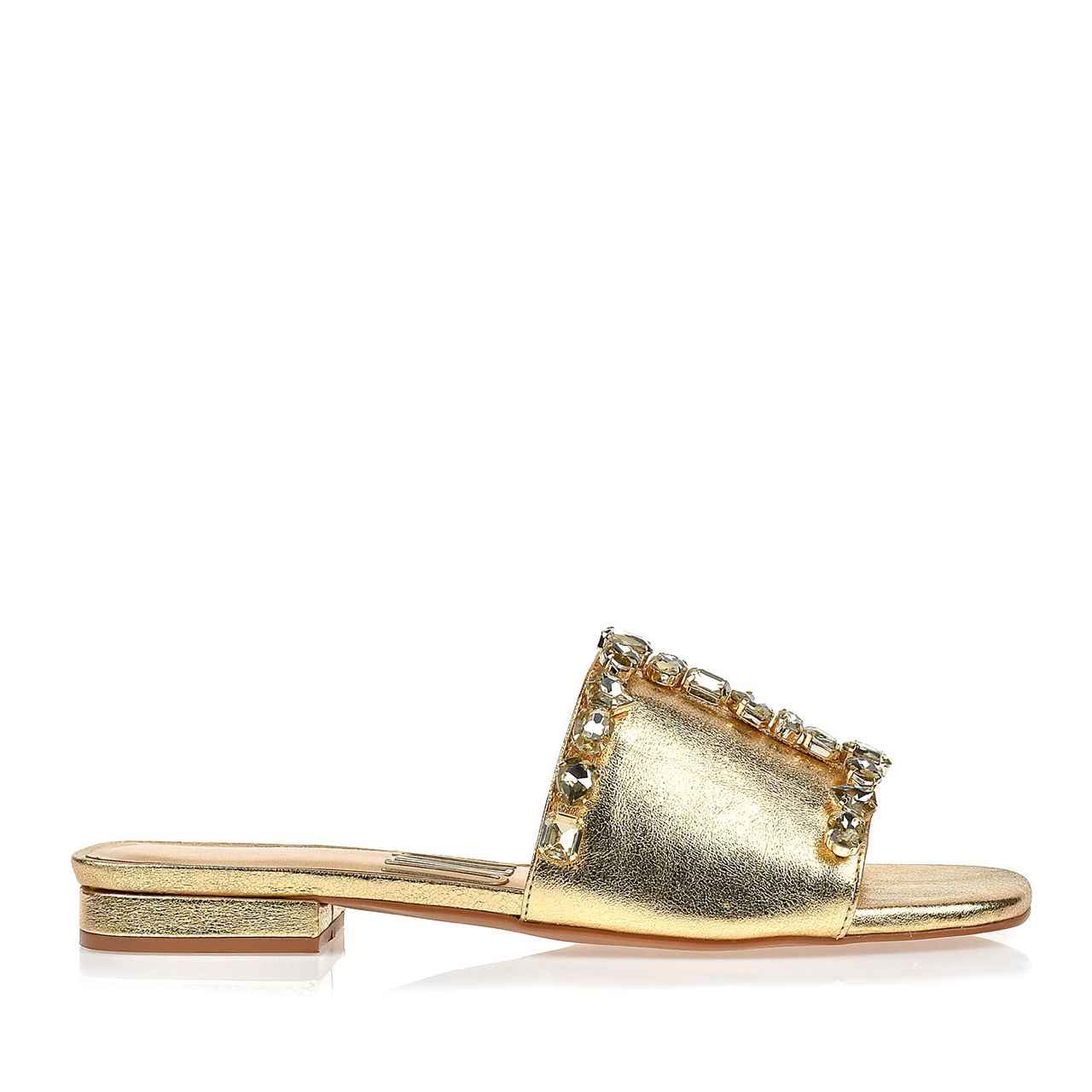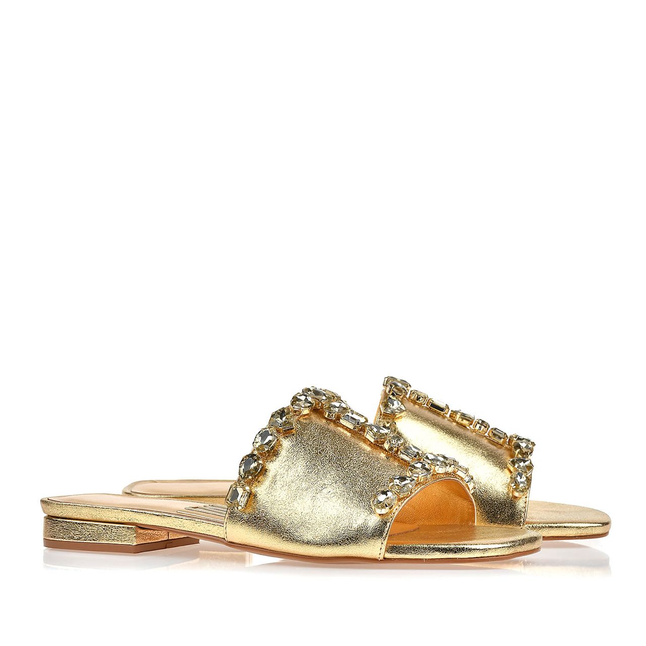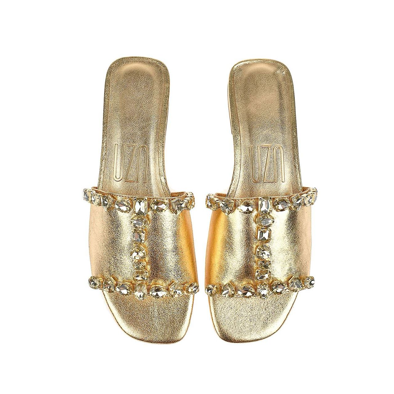 Step into effortless elegance with these flat metallic gold crystal sandals . They add a touch of shimmer to any outfit while keeping you comfortable all day long. Perfect for sunny days, casual outings, or a dressy laid-back look, these sandals are the stylish staple your wardrobe needs.