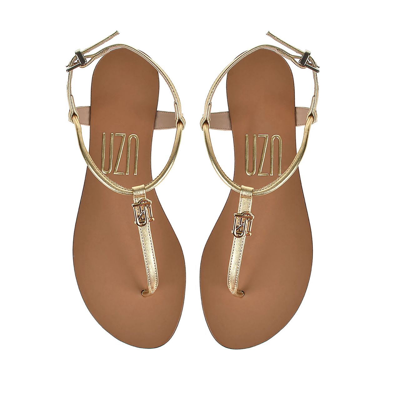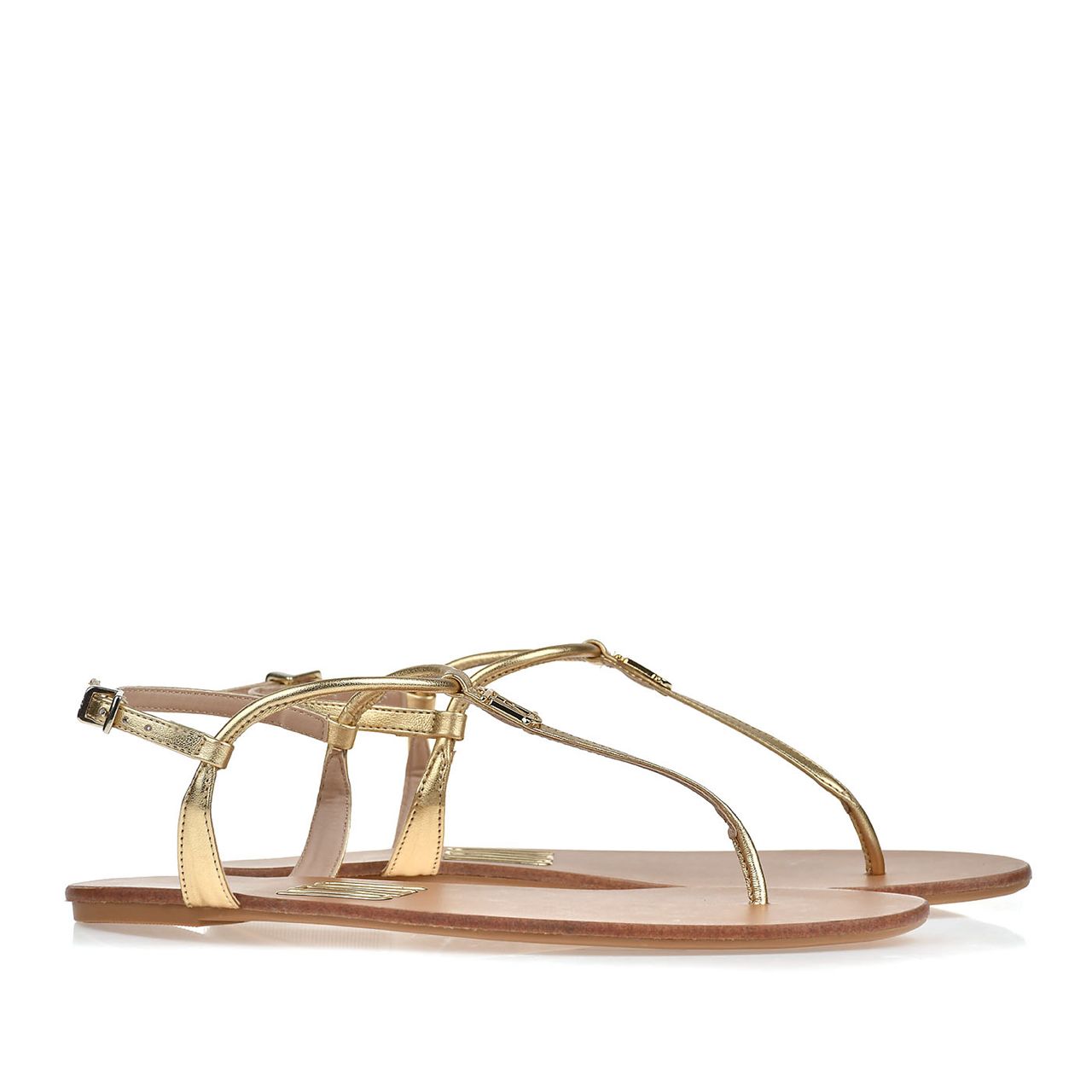 Step into effortless elegance with these flat sandals metallic gold. Designed with slender crisscrossing straps for a secure and flattering fit, they add a touch of shimmer to any outfit while keeping you comfortable all day long.