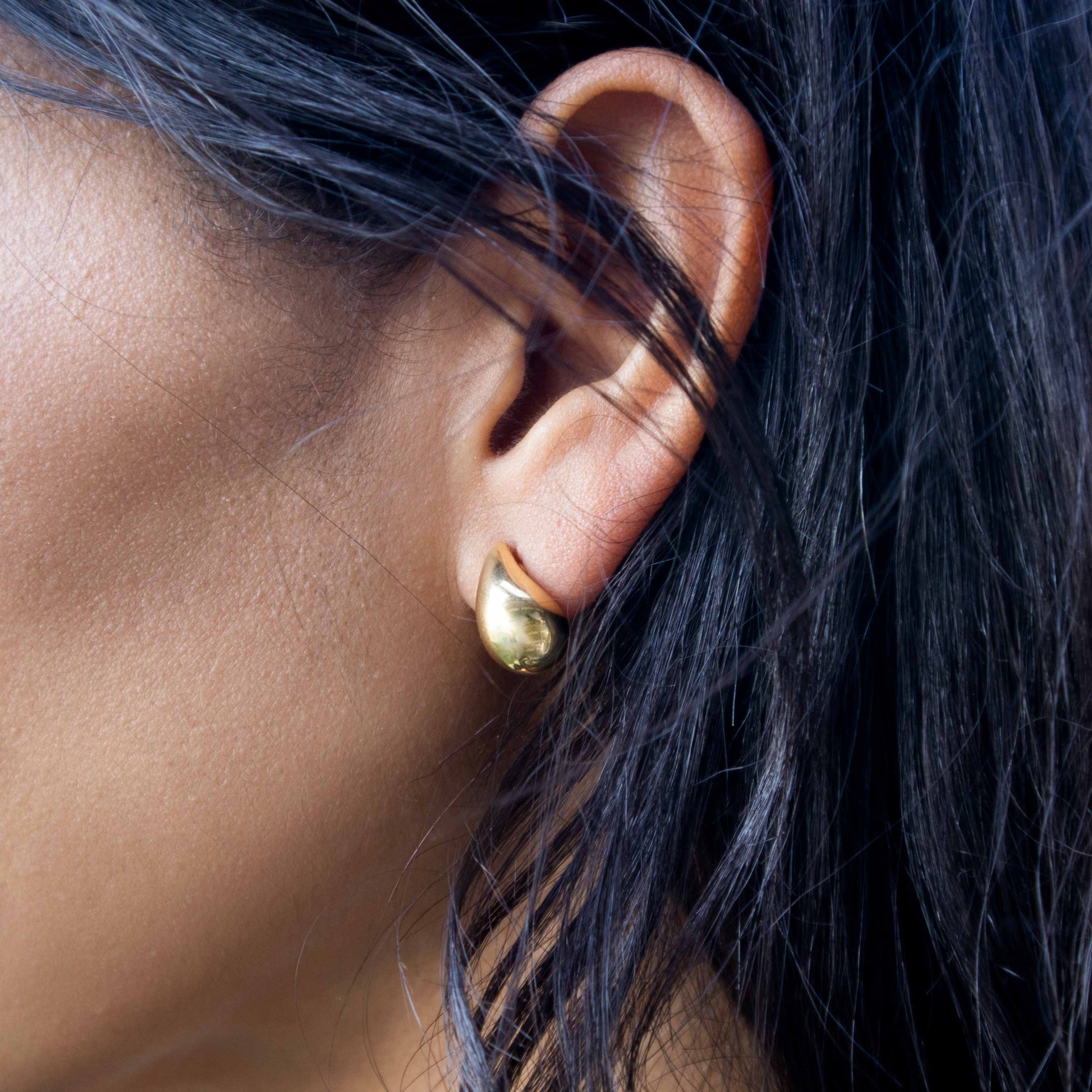 Stunning pear-shaped earrings crafted from 14K yellow gold, exuding elegance and style with their unique and beautiful design.