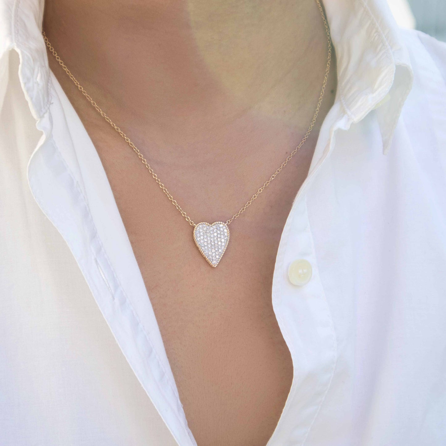 14K Yellow Gold Diamond Heart Pendant Necklace