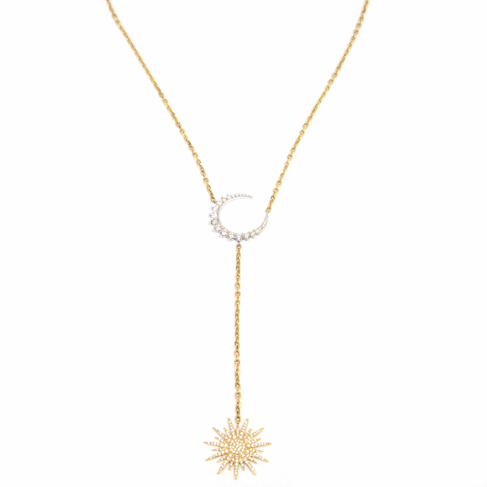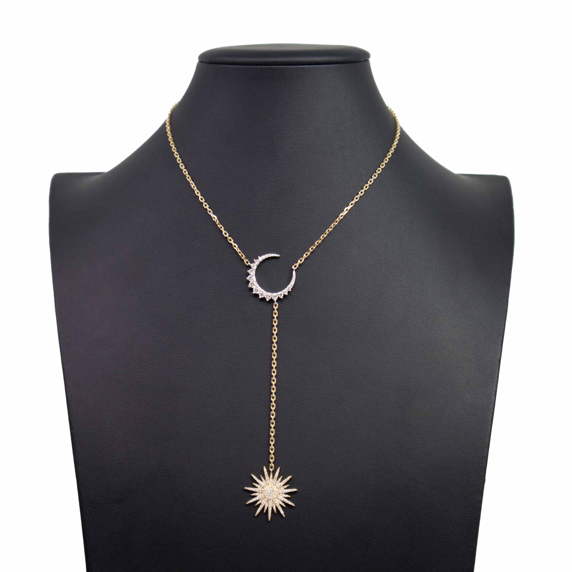 14K Yellow Gold Diamond Moon And Star Lariat Necklace