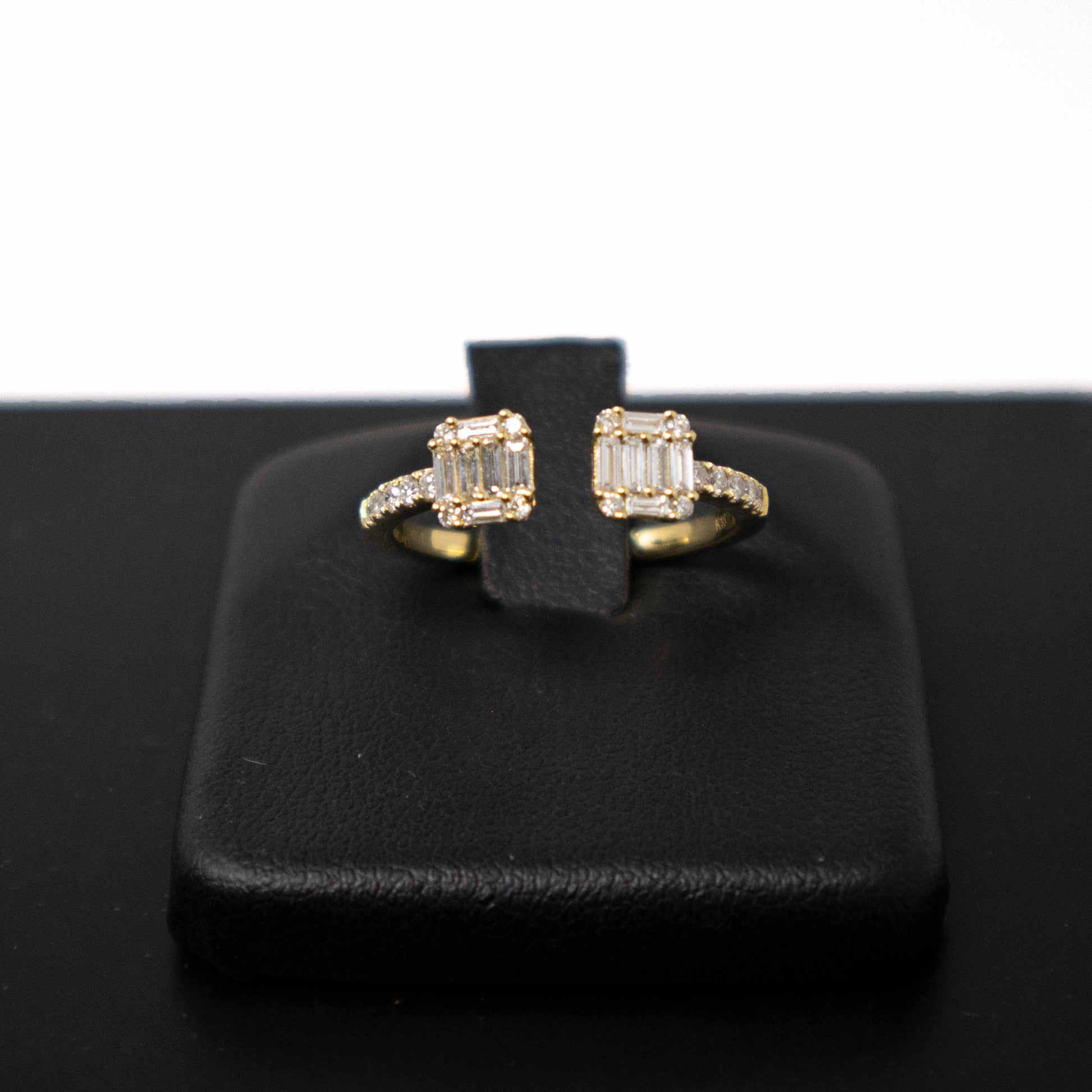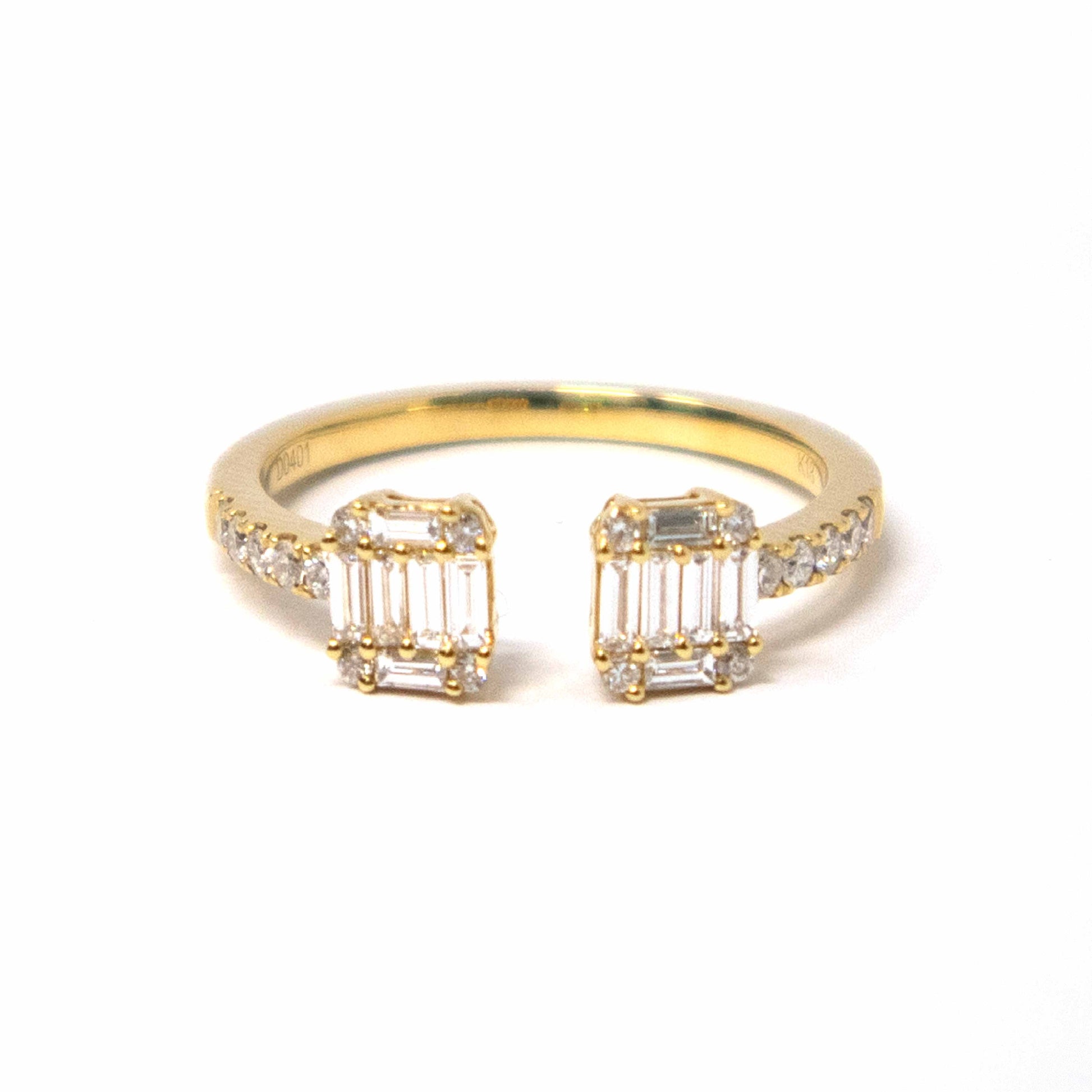 Crafted from luxurious 18K yellow gold, this exquisite ring features an open square design adorned with radiant diamonds, exuding timeless elegance and luxury. The rich gold beautifully complements the sparkle of the diamonds, making this ring a versatile and sophisticated accessory suitable for various occasions. Whether worn as a statement piece or as a refined addition to a jewelry collection, this diamond open square ring adds a touch of glamour and refinement to any ensemble.
