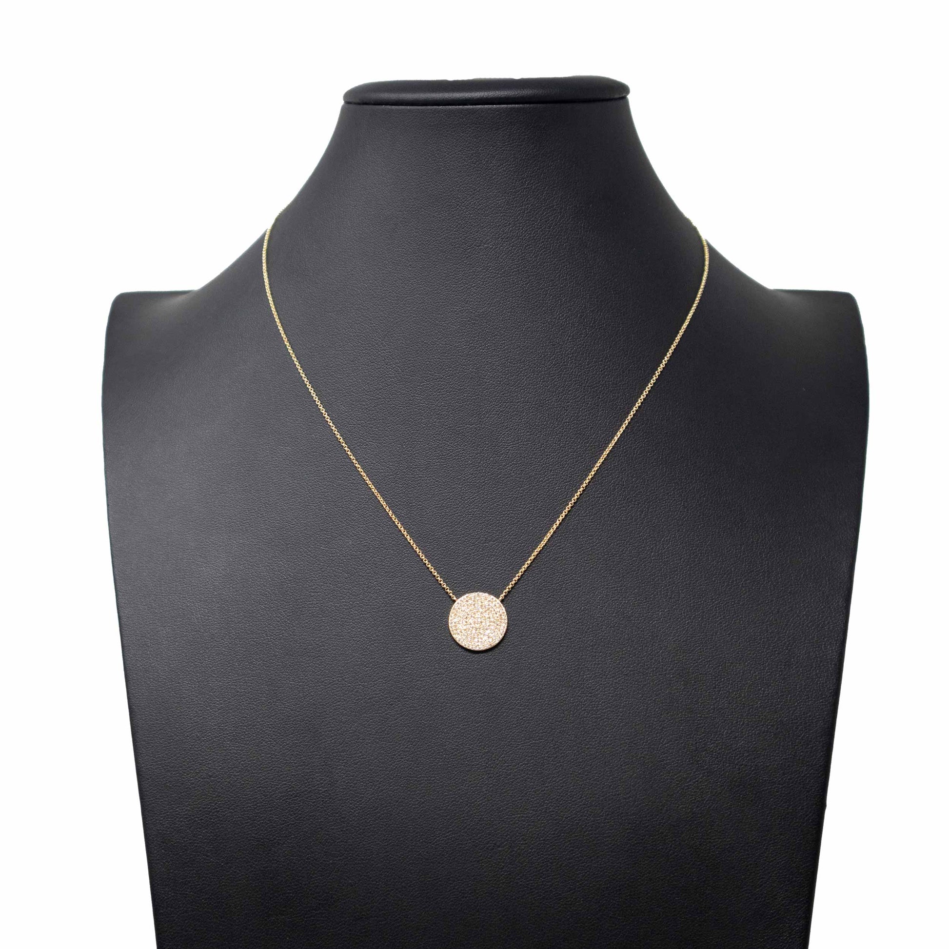 14K Yellow Gold Diamond Pave Round Pendant Necklace