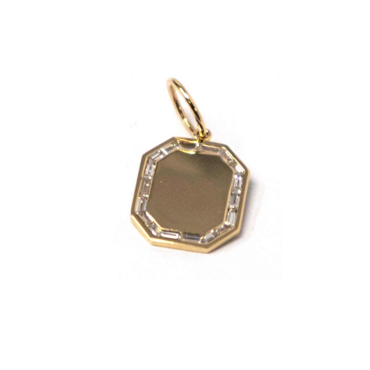 Discover this octagon yellow gold pendant adorned with dazzling diamonds. Elevate your style today.