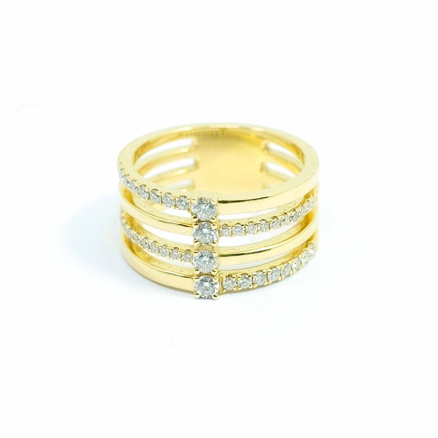 18k Four Row Yellow Gold Diamond Ring