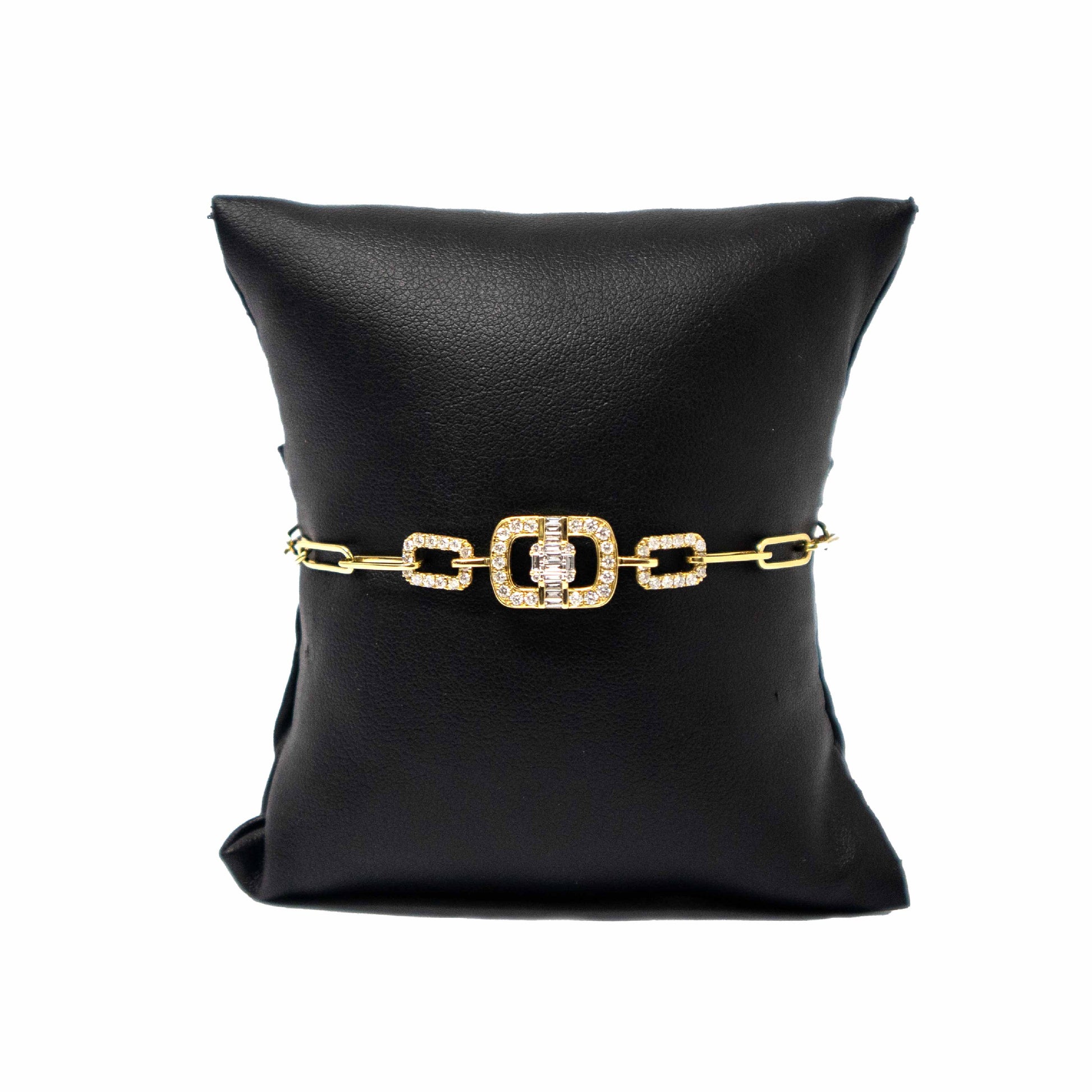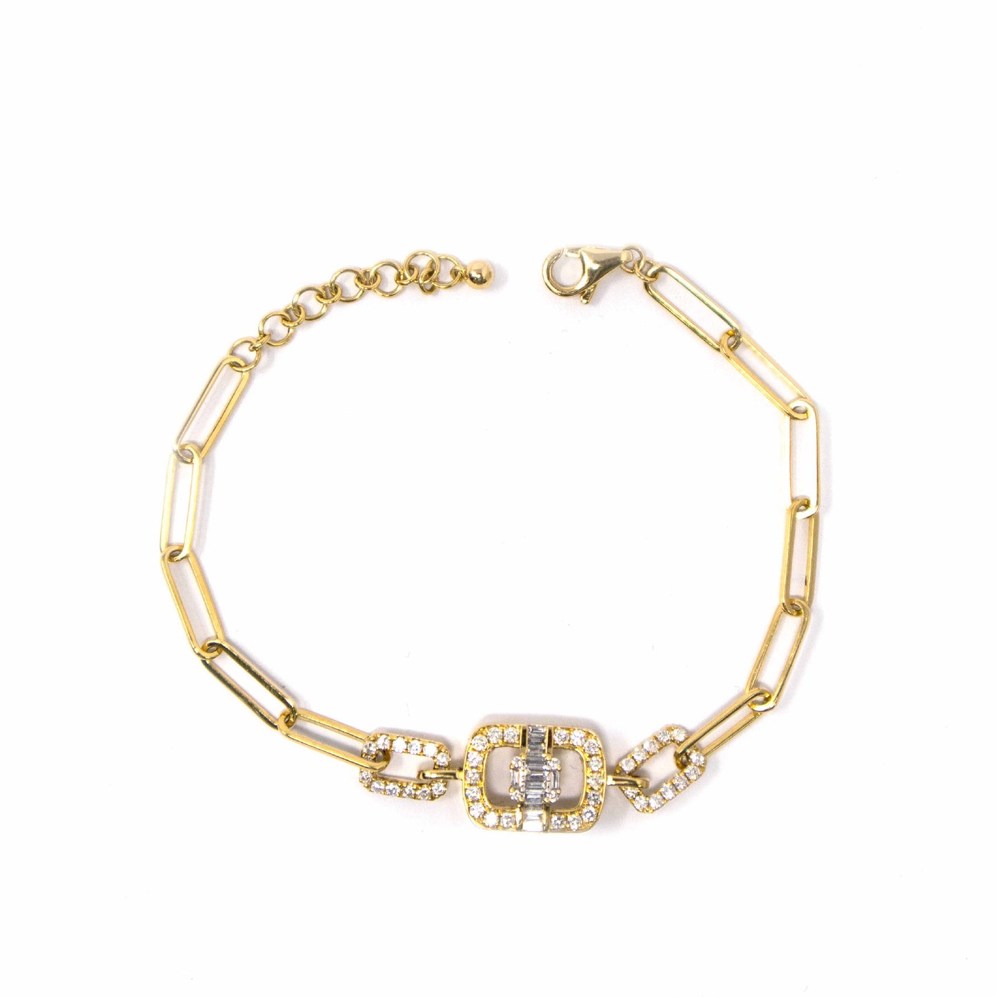 18K Yellow Gold Diamond Square Paper Clip Bracelet