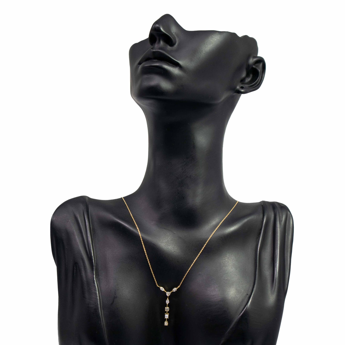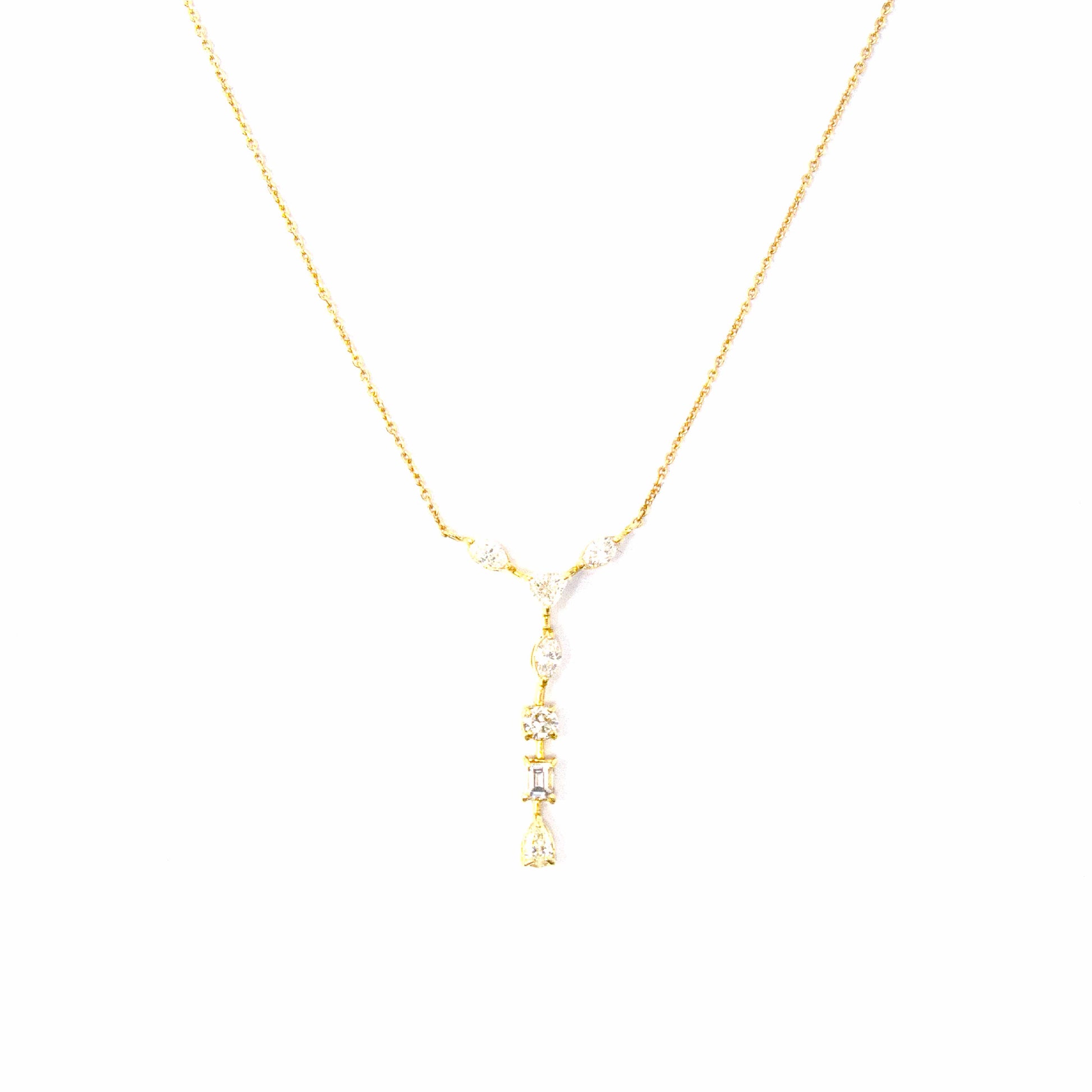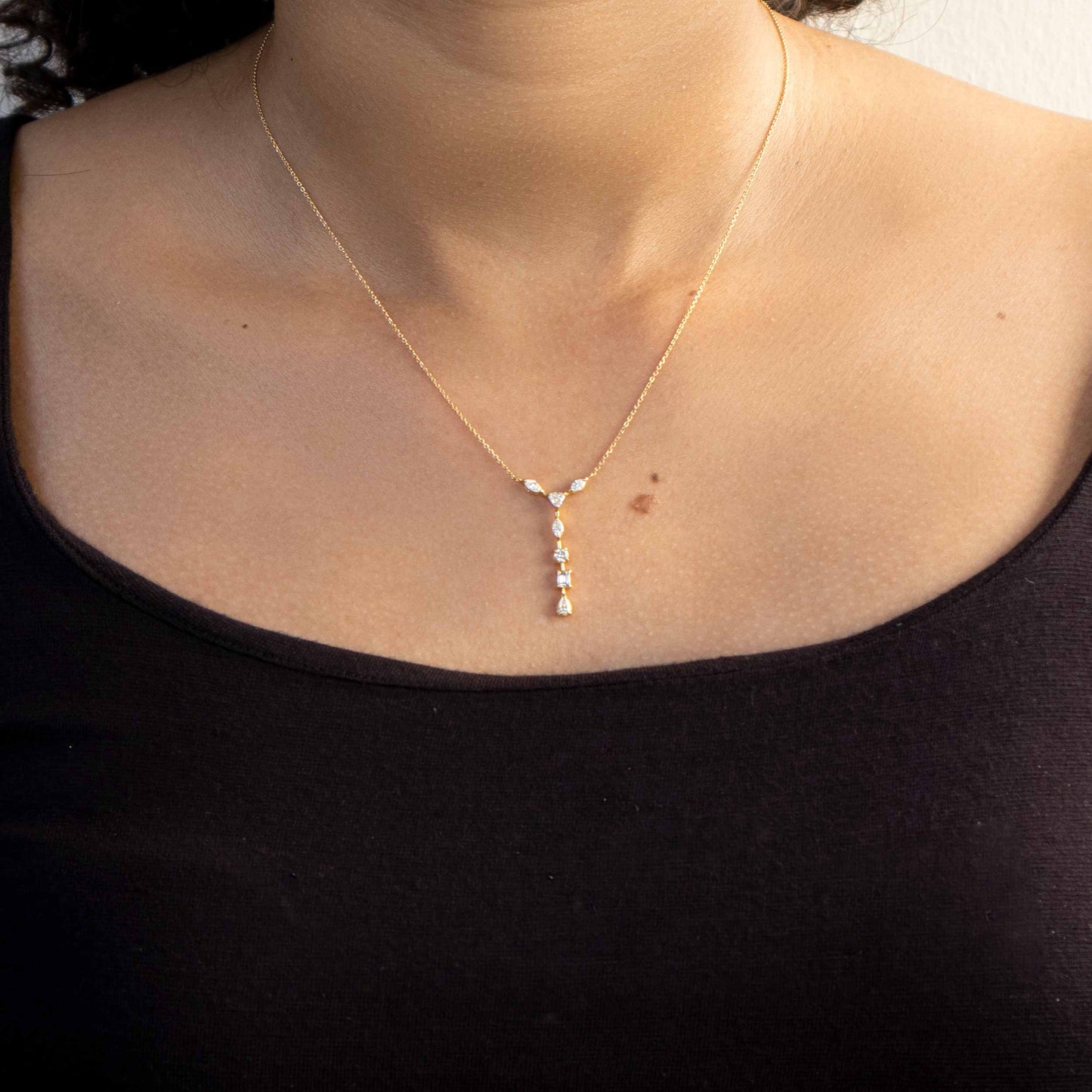 18K Yellow Gold Drop Y Shape Diamond Pendant Necklace