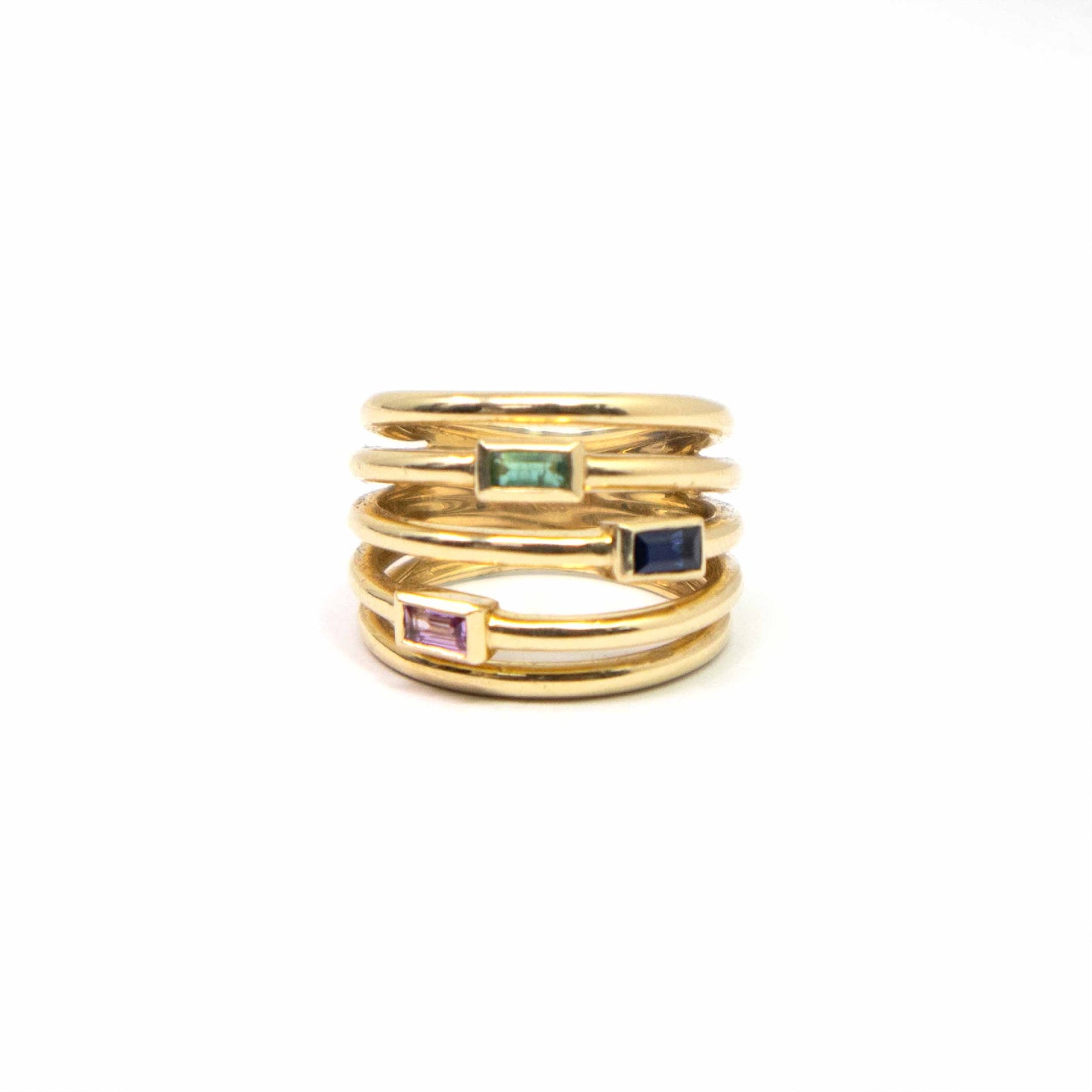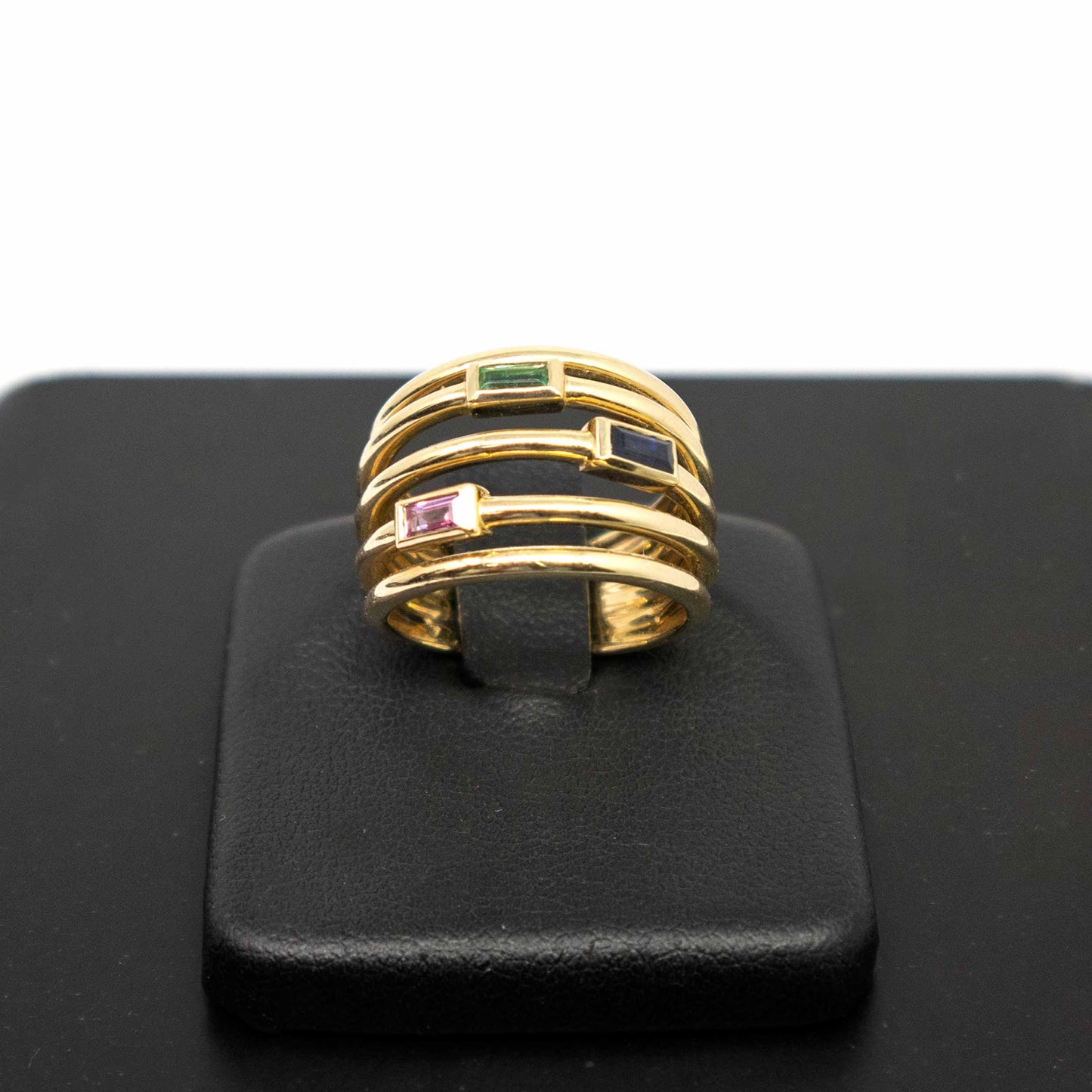 14K Yellow Gold Five Band Semi-precious Stone Ring