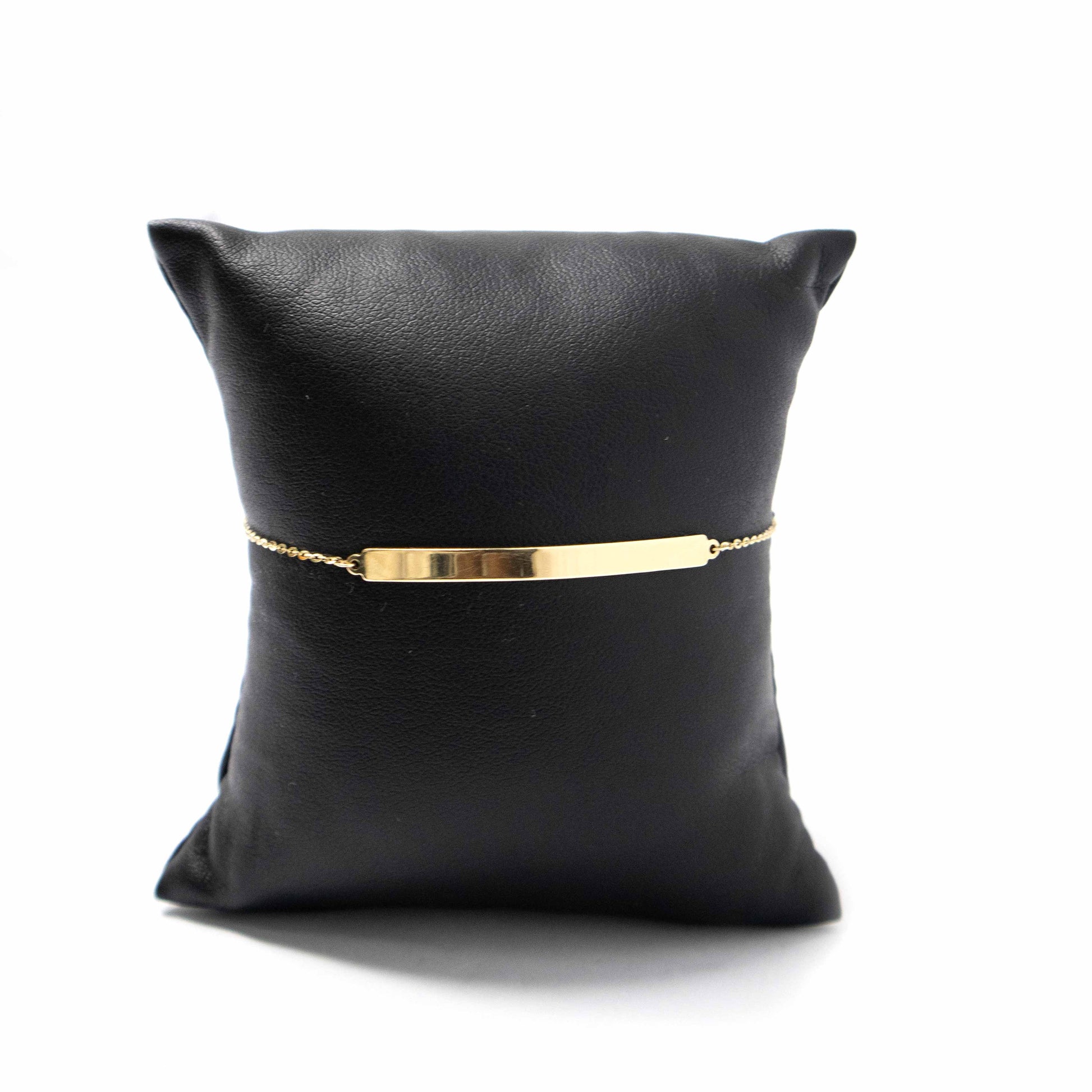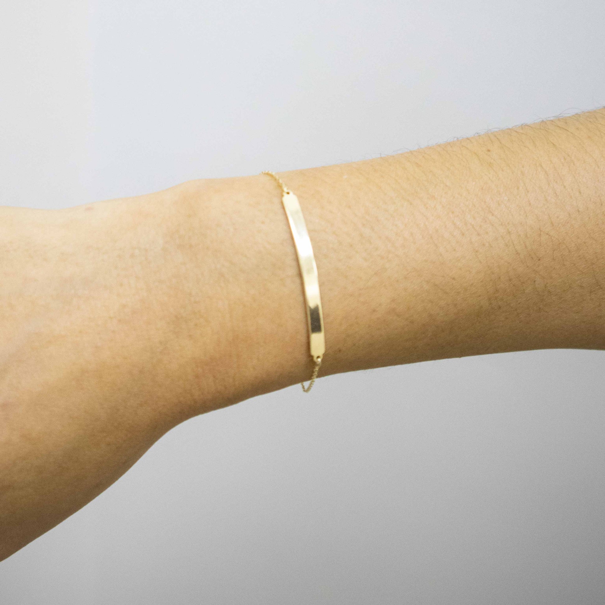 Featuring a classic link design and polished ID plate, this bracelet offers a stylish canvas for personalized engravings, making it a meaningful and sophisticated addition to any jewelry collection.