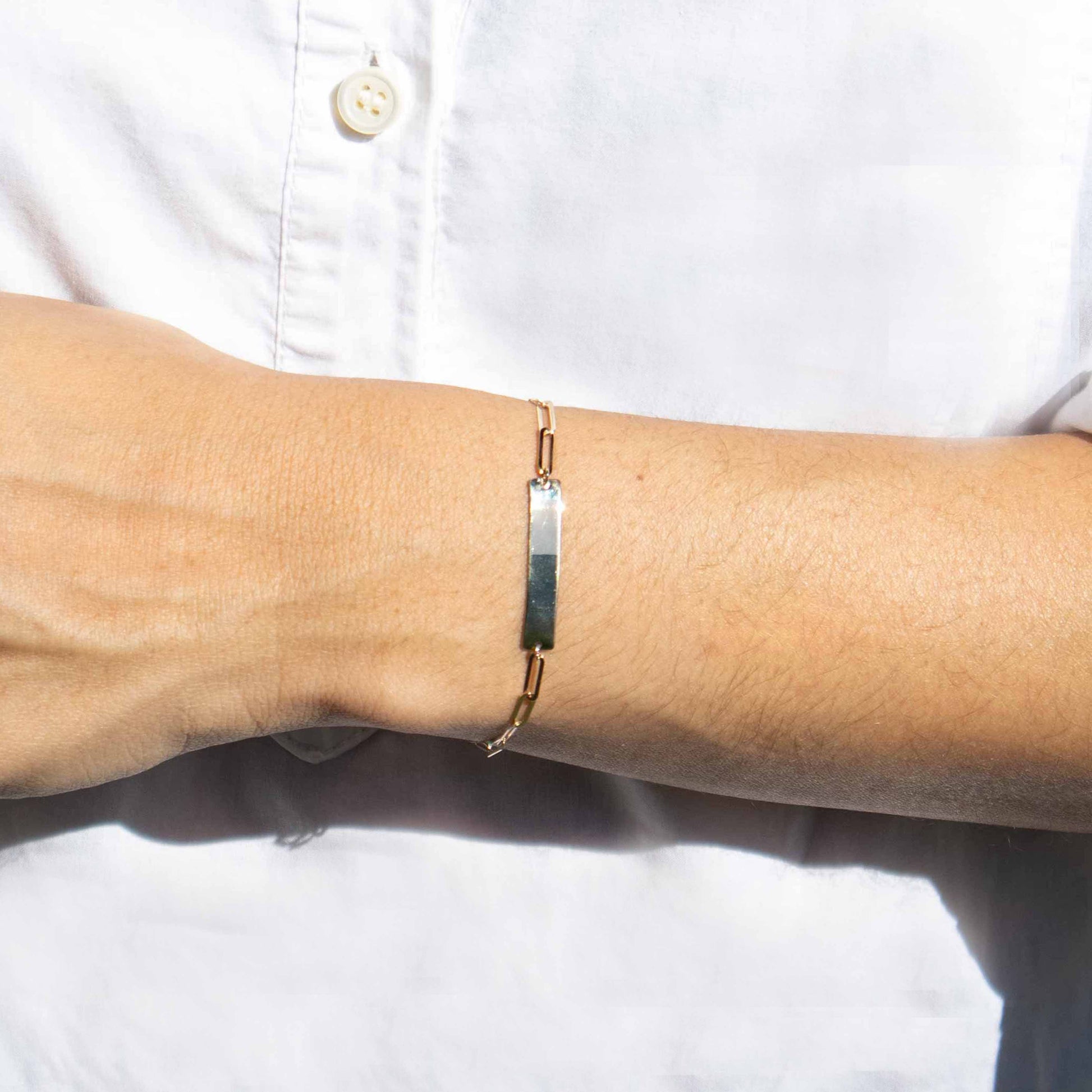 The paperclip chain design gives it a modern edge, making it a versatile piece that can be worn every day or for special occasions. Elevate your wrist game with this sophisticated and on-trend ID bracelet, perfect for adding a touch of timeless luxury to any ensemble.